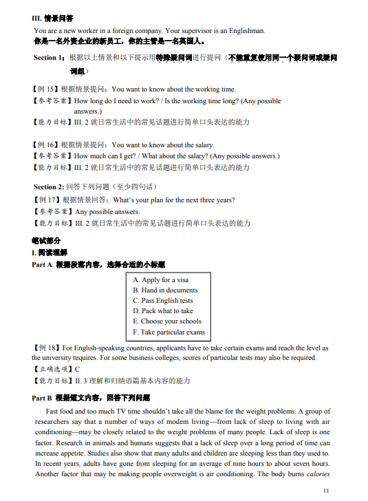 2020年上海中等职业学校公共基础课学业水平考试说明(英语)