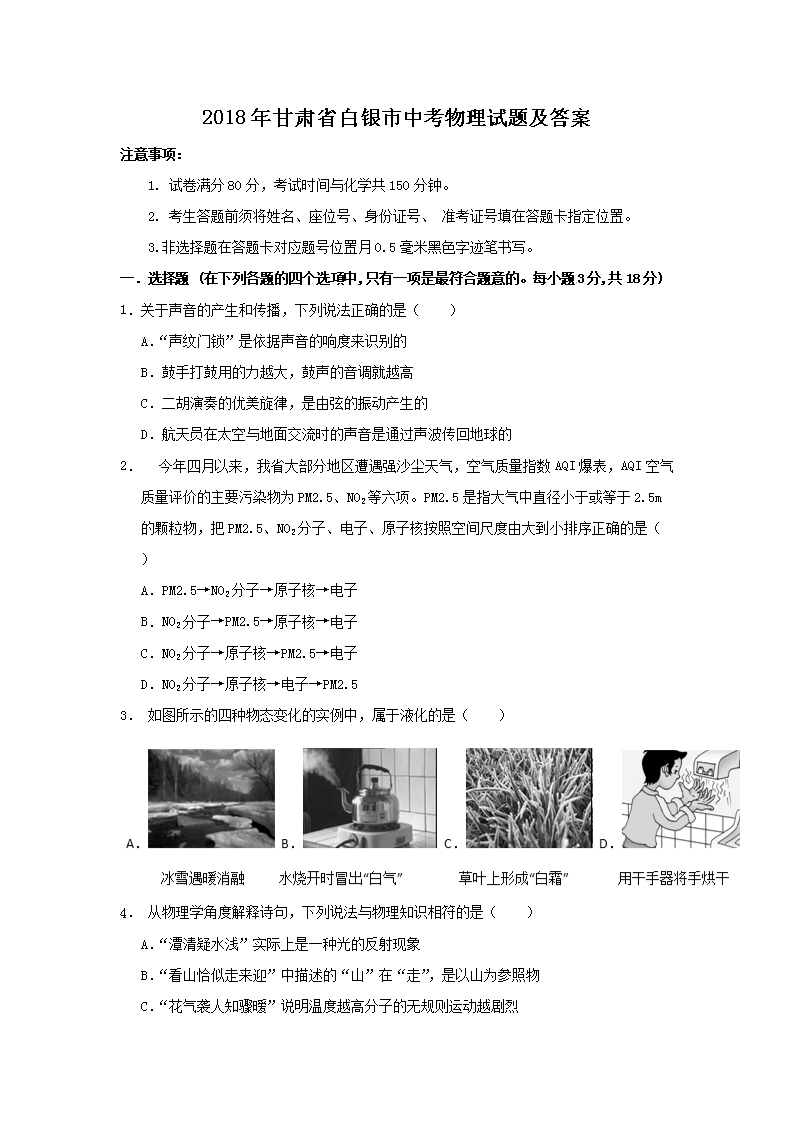 【文档名称】 2018年甘肃省白银市中考物理试题及答案(Word版).doc
