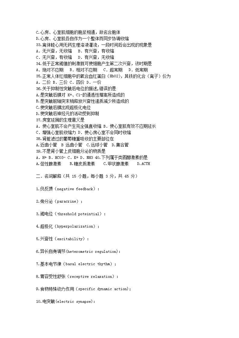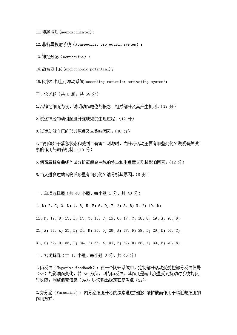 【文档名称】 2012年浙江农林大学动物生理学考研真题及答案(Word版).doc