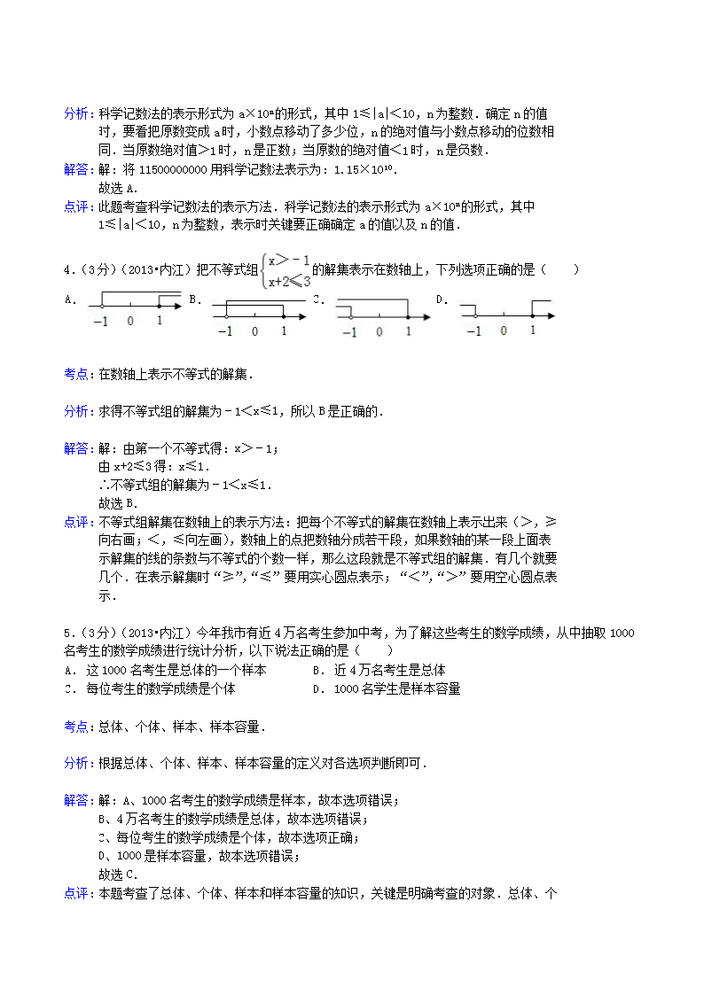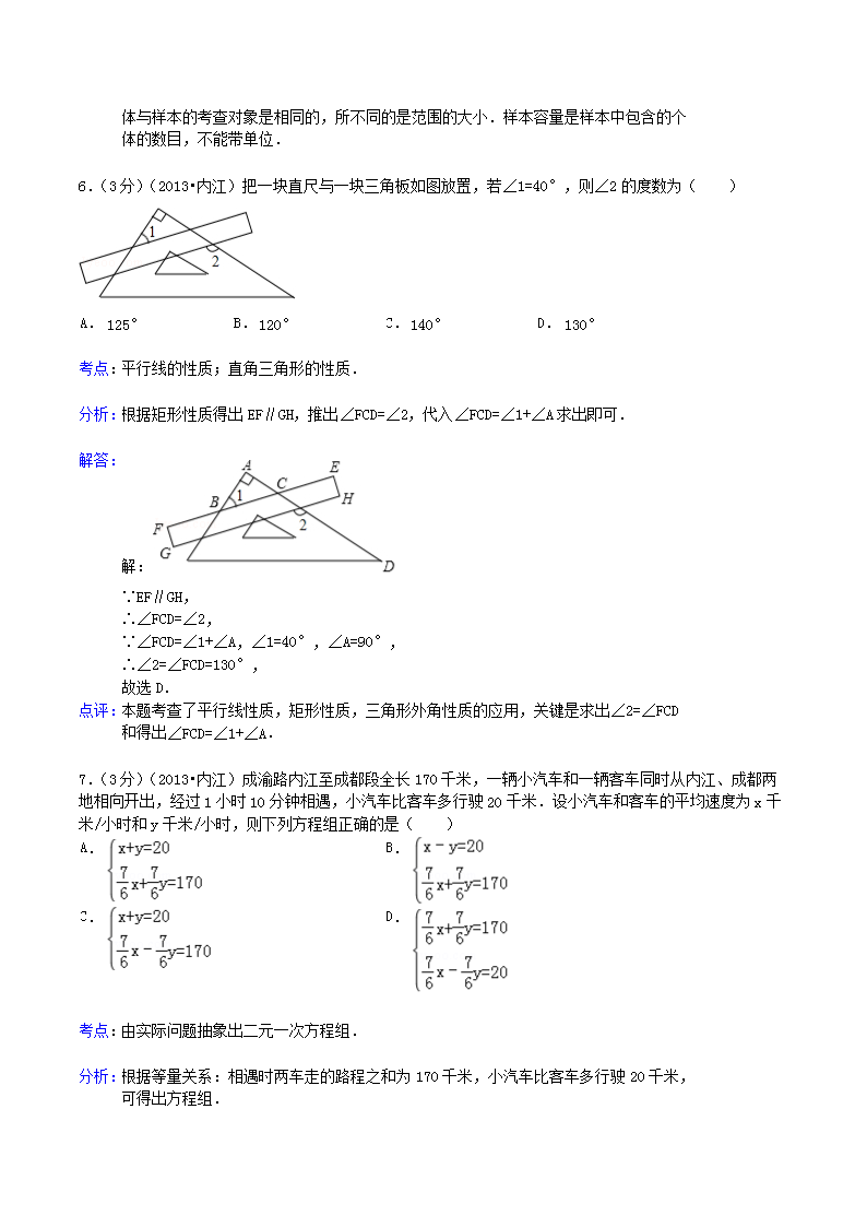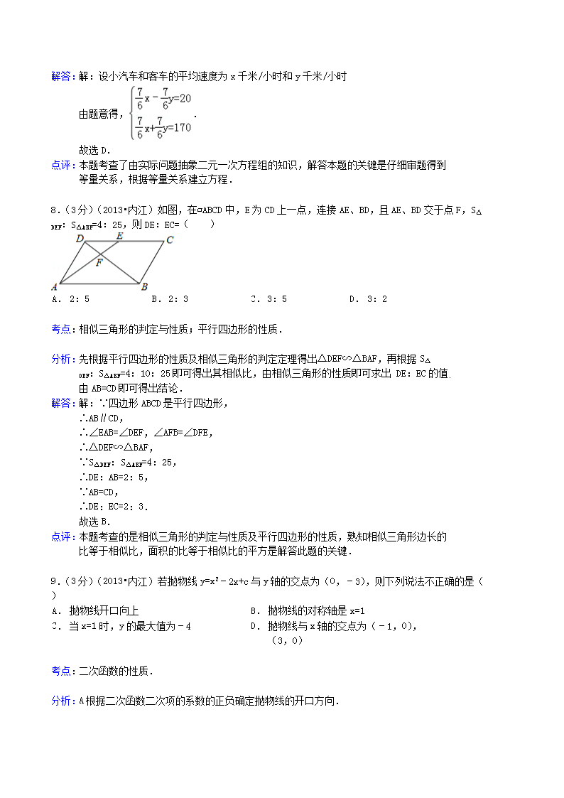 【文档名称】 2013年四川省内江市中考数学真题及答案(Word版).doc
