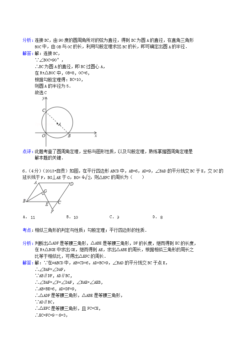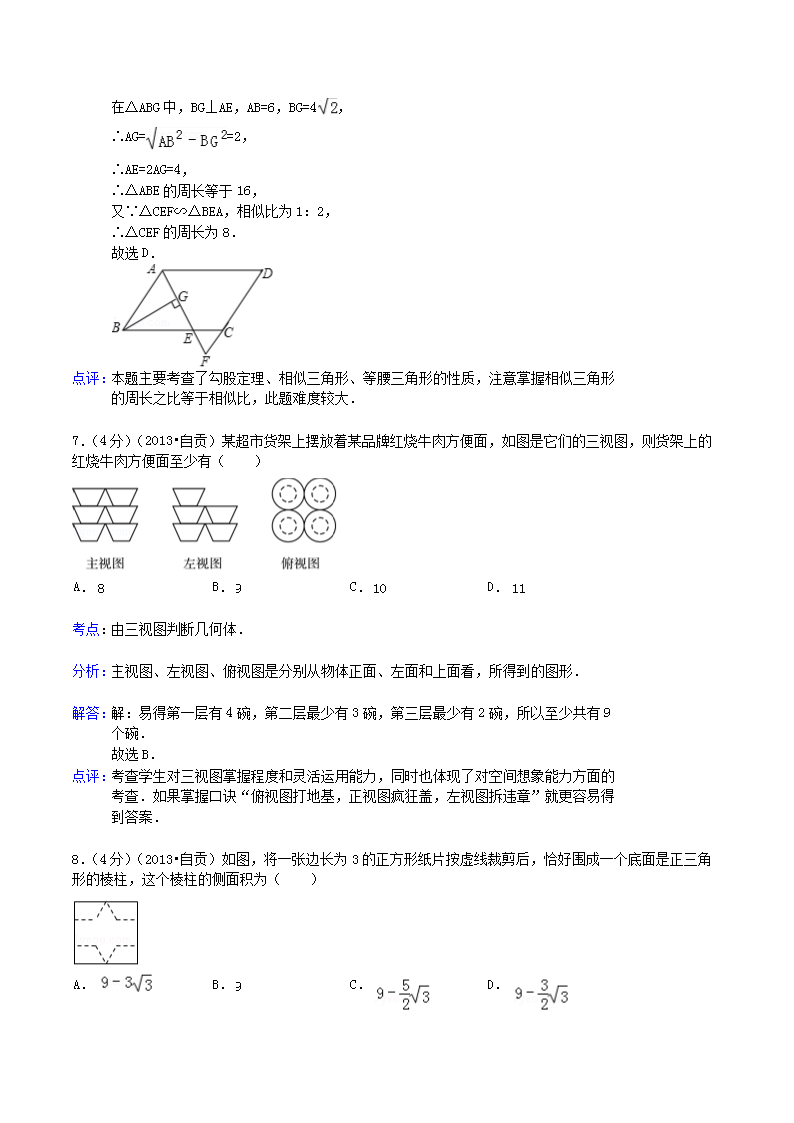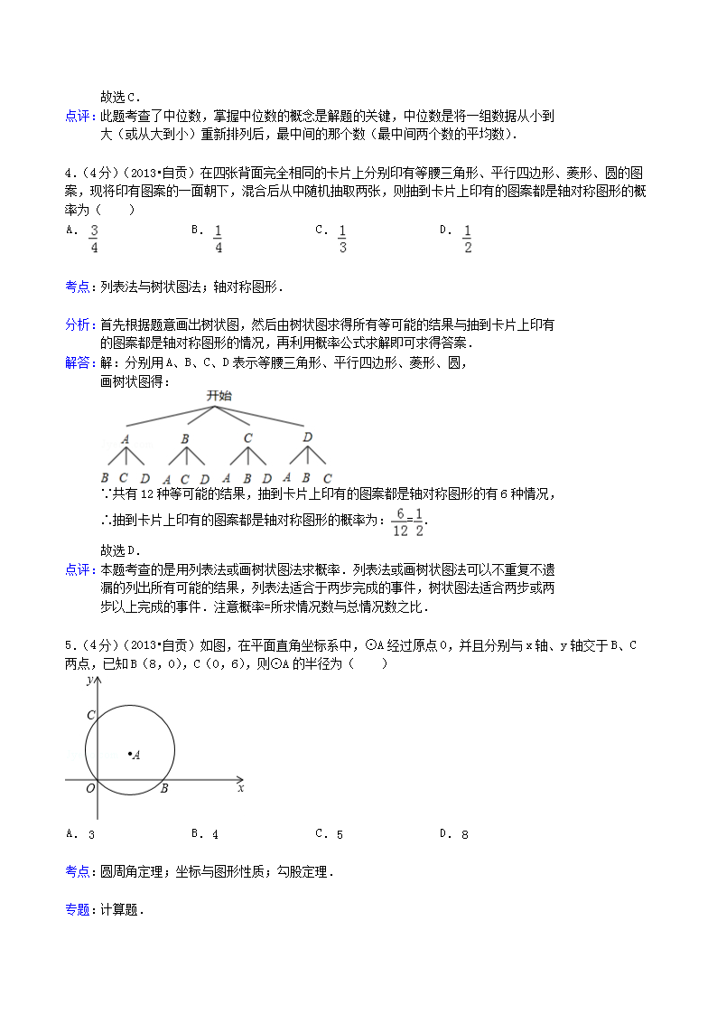 【文档名称】 2013年四川省自贡市中考数学真题及答案(Word版).doc