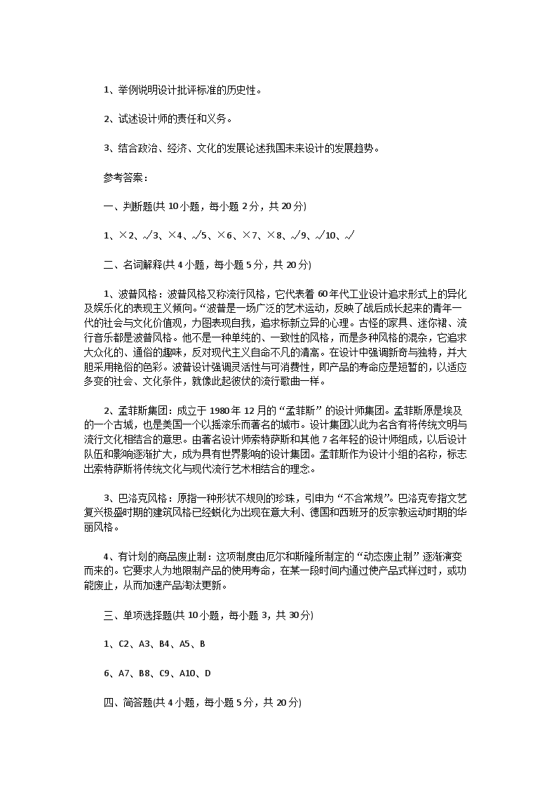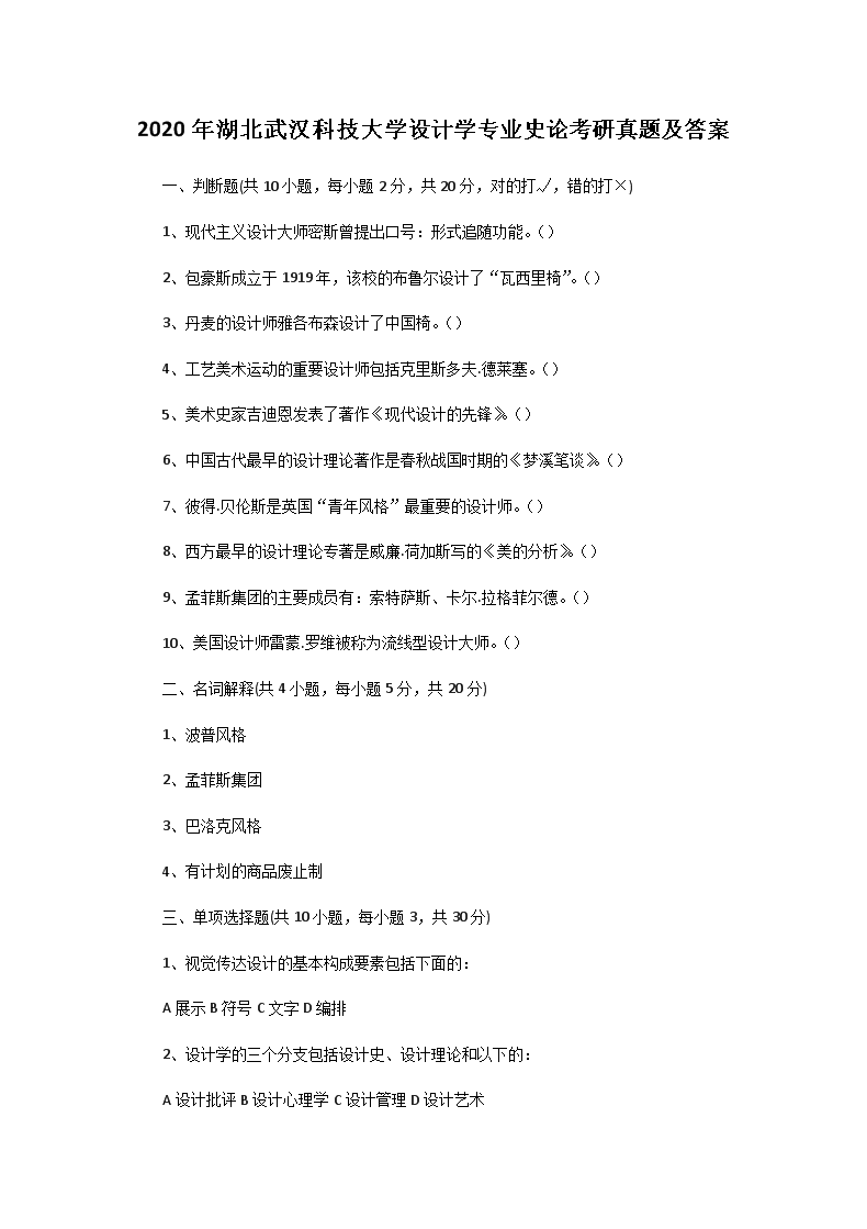【文档名称】 2020年湖北武汉科技大学设计学专业史论考研真题及答案(Word版).doc