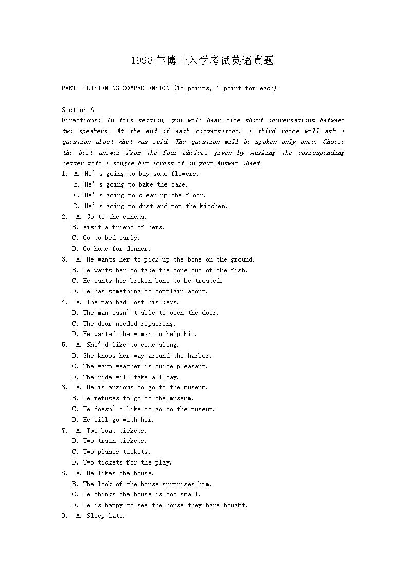 【文档名称】 1998年博士入学考试英语真题(Word版).doc