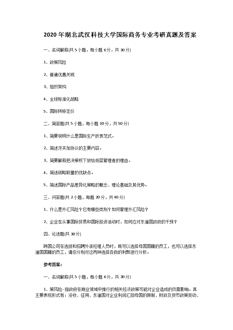【文档名称】 2020年湖北武汉科技大学国际商务专业考研真题及答案(Word版).doc