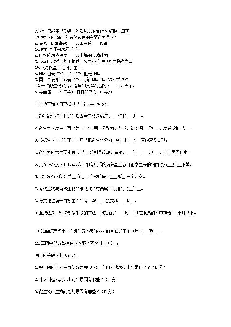【文档名称】 2012年浙江农林大学微生物学真题及答案(Word版).doc