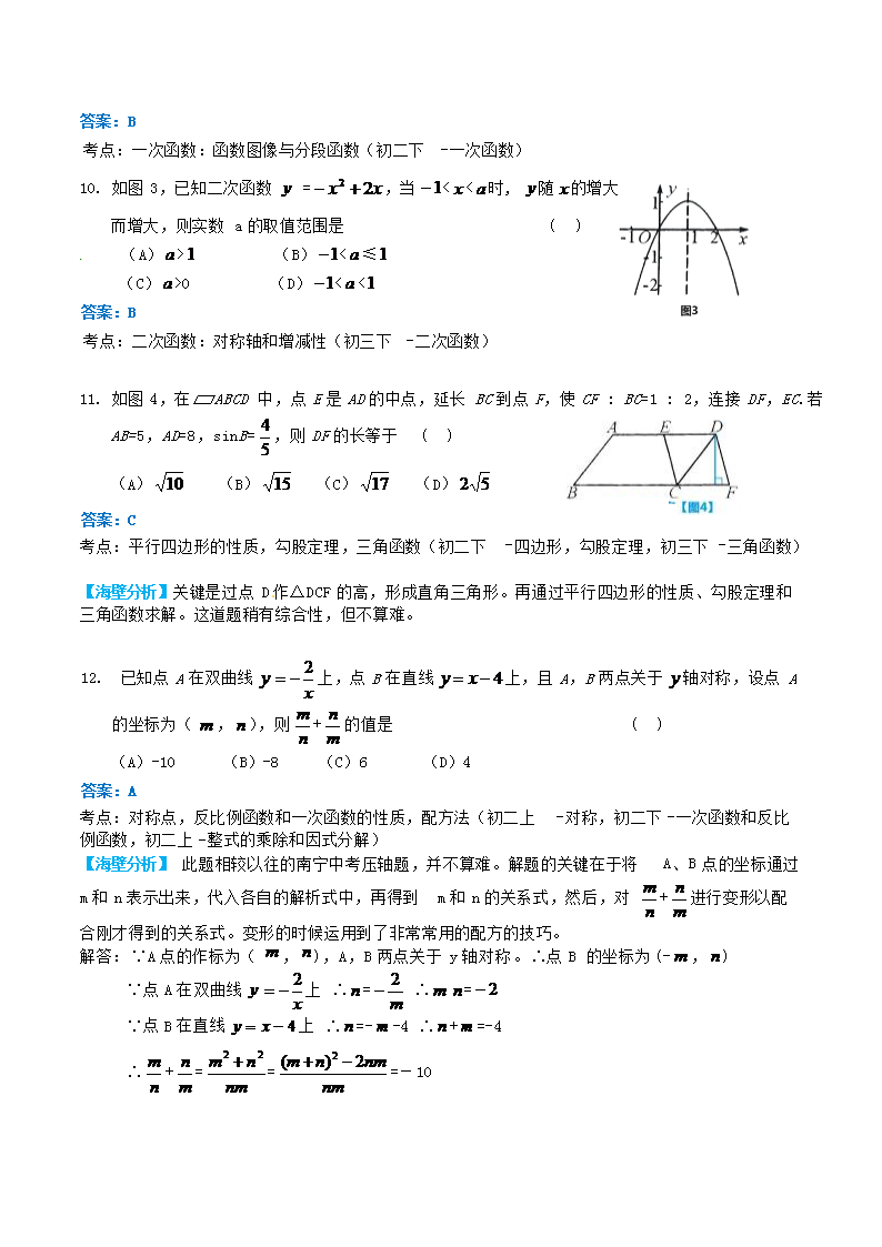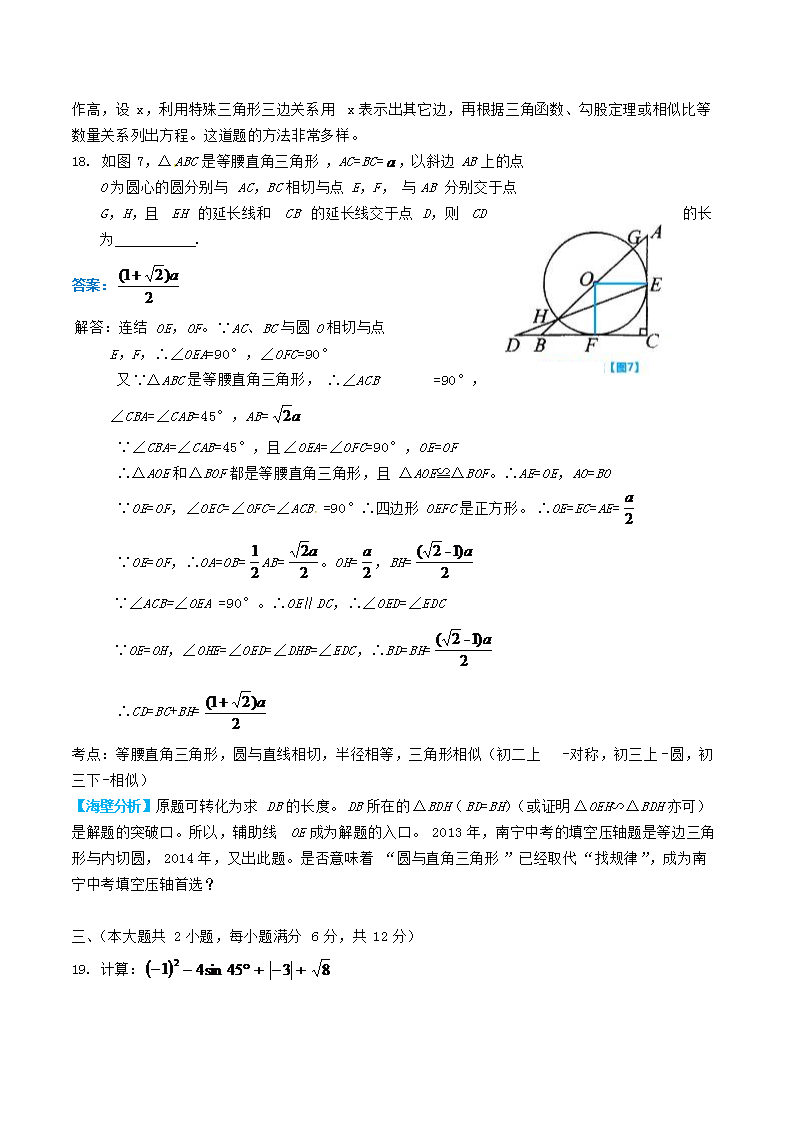 【文档预览】 无忧考网整理发布2014年广西南宁市中考数学真题及答案(Word版),前五页预览如下: