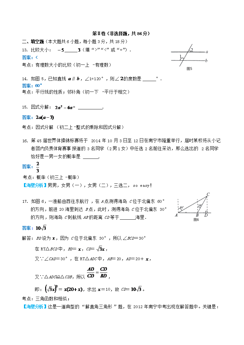 【文档名称】 2014年广西南宁市中考数学真题及答案(Word版).doc