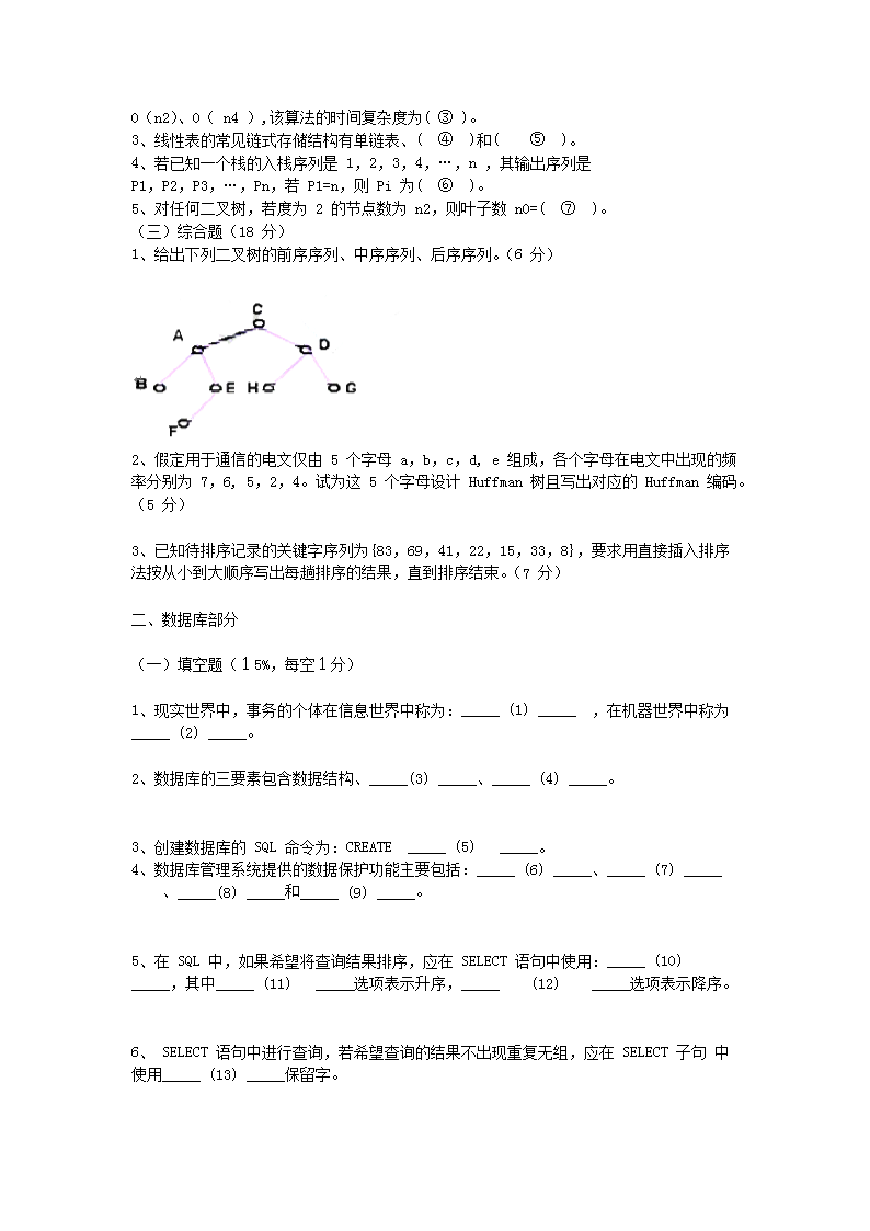 【文档名称】 2012年浙江农林大学信息技术综合考研真题及答案(Word版).doc