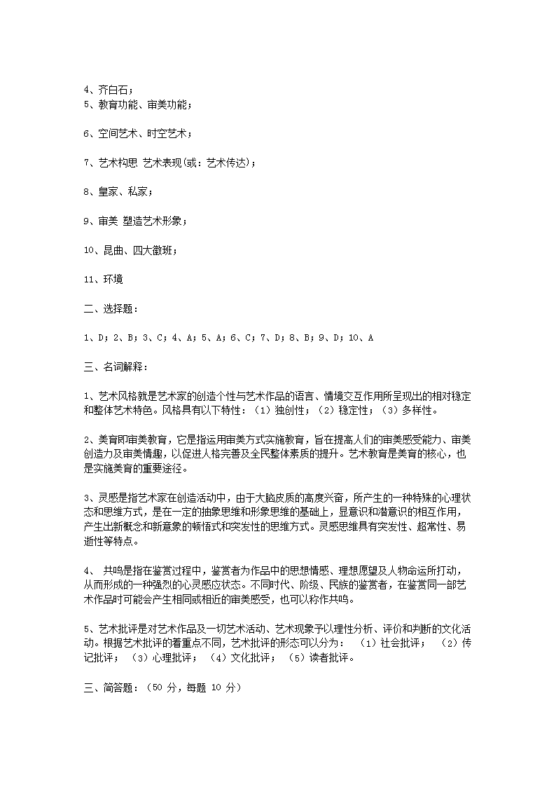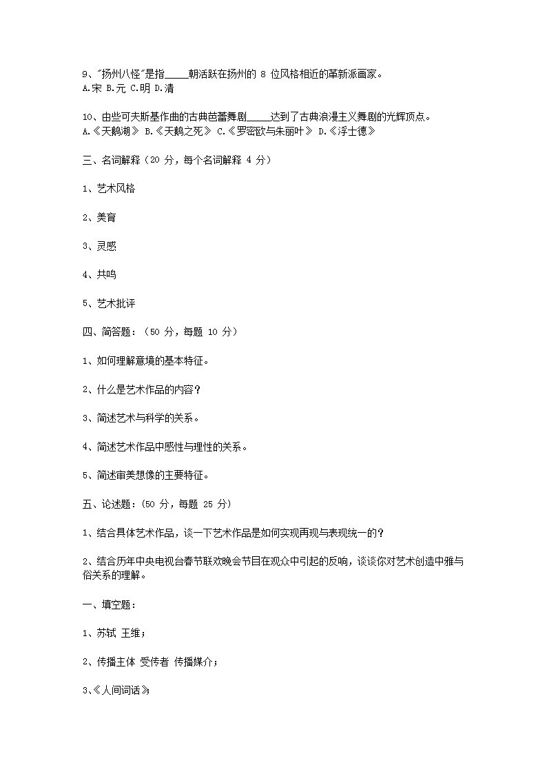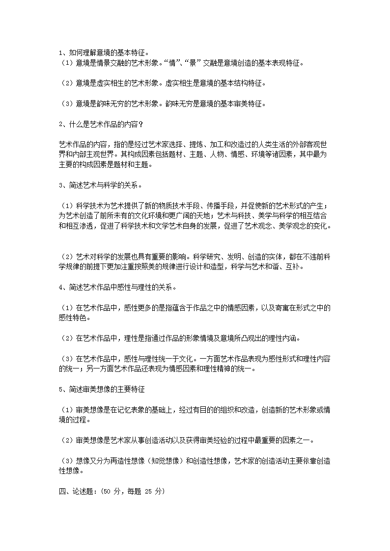 【文档名称】 2012年浙江农林大学艺术概论真题及答案(Word版).doc