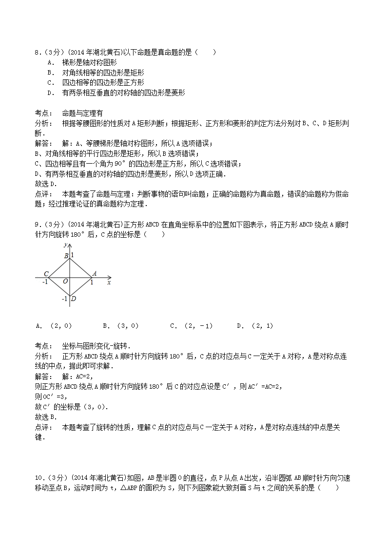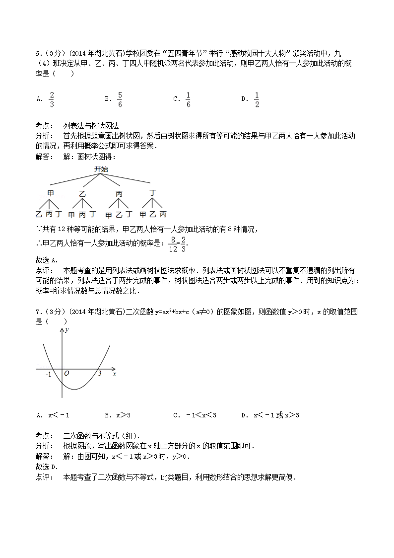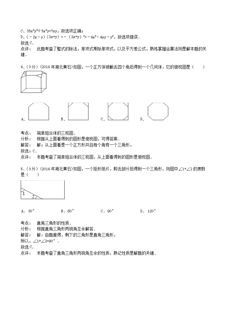 【文档名称】 2014年湖北省黄石市中考数学真题及答案(Word版).doc
