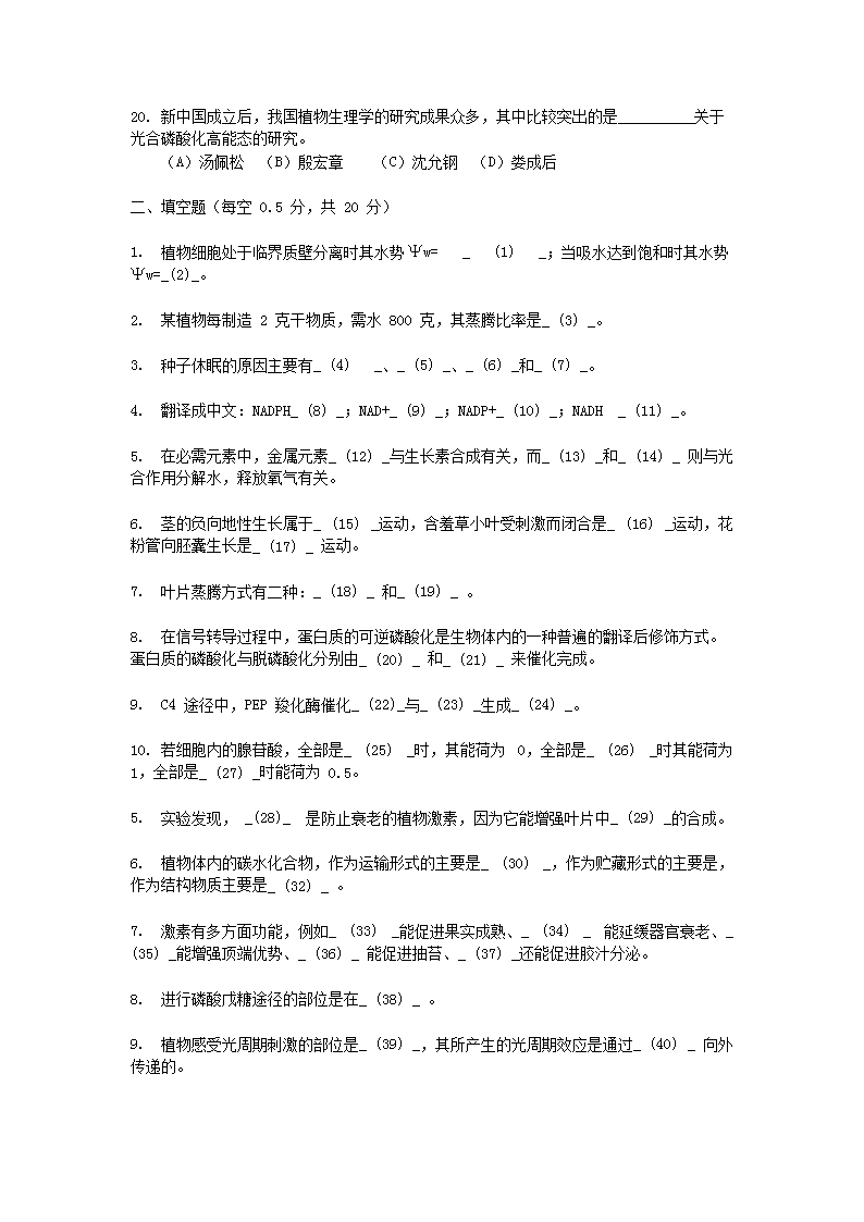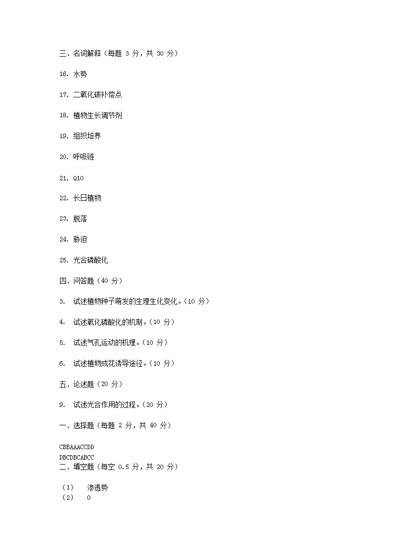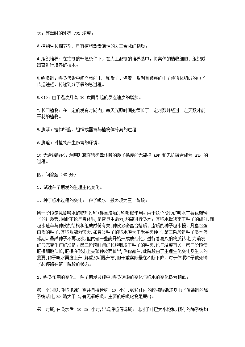 【文档名称】 2012年浙江农林大学植物生理学真题及答案(Word版).doc