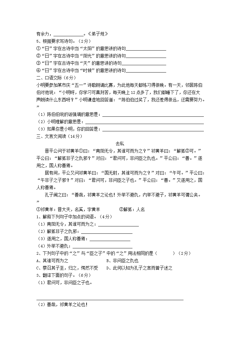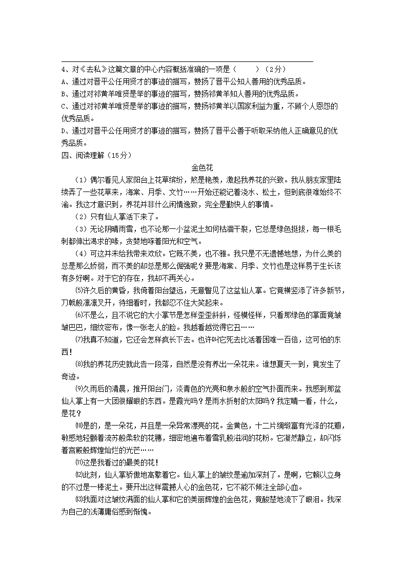【文档预览】 无忧考网整理发布2015年浙江小升初语文真题及答案(Word版),前五页预览如下: