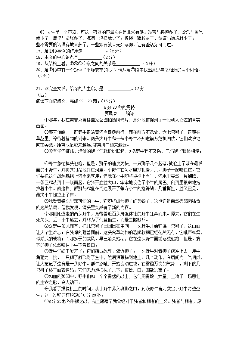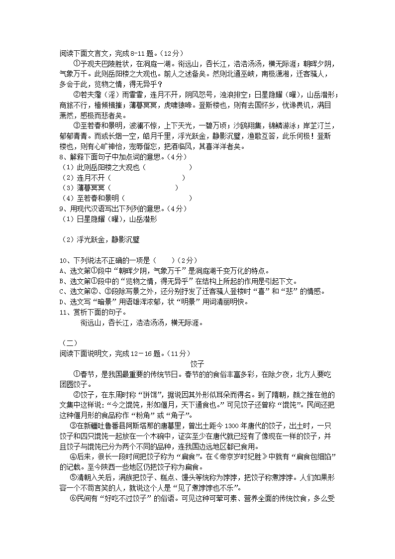 【文档预览】 无忧考网整理发布2008年山西省中考语文真题及答案(Word版),前五页预览如下: