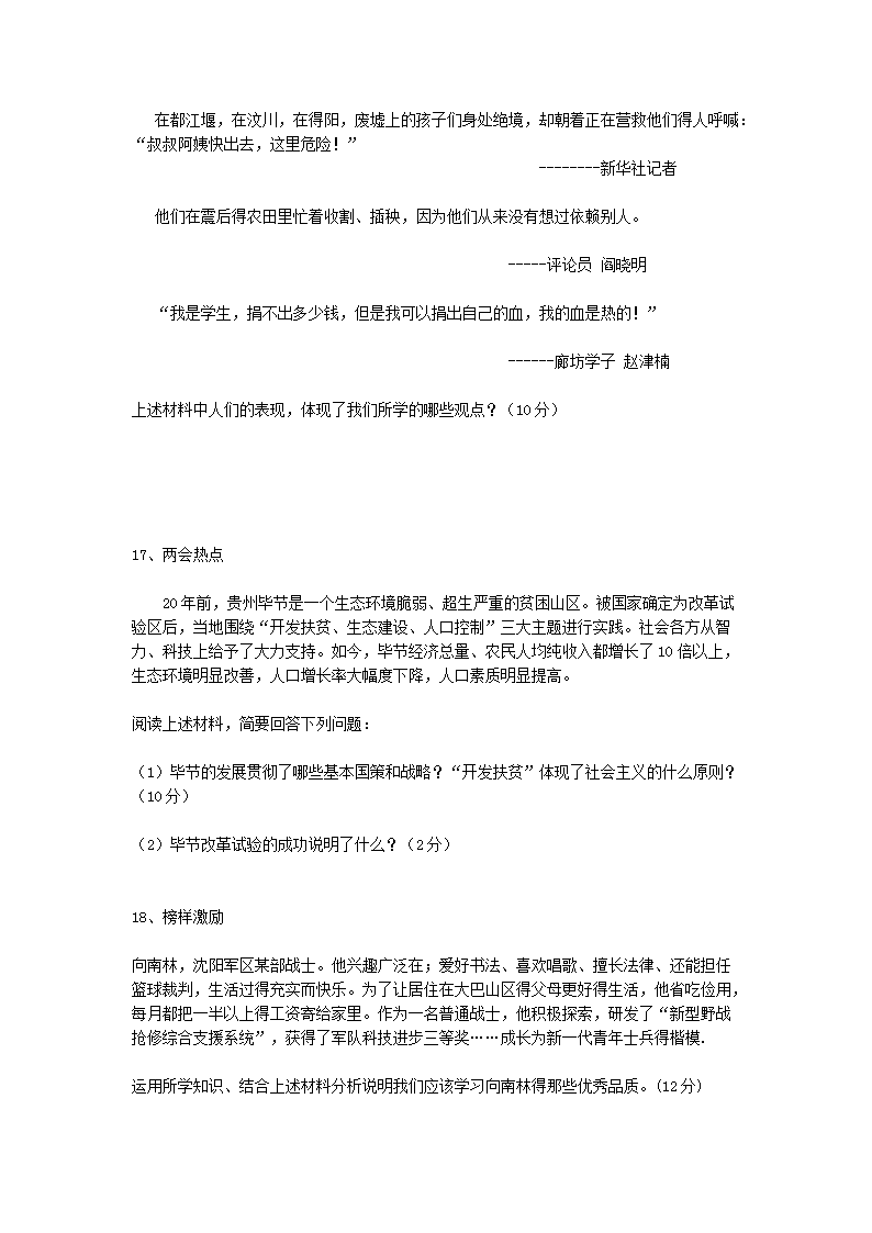 【文档预览】 无忧考网整理发布2008年山西省中考政治真题及答案(Word版),前五页预览如下: