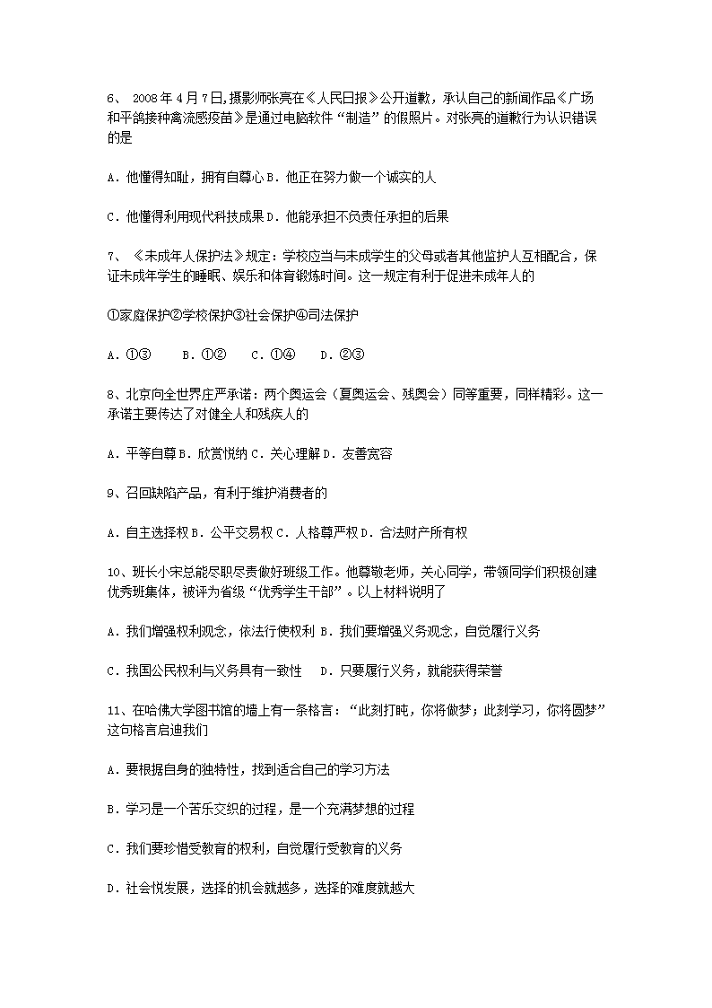 【文档名称】 2008年山西省中考政治真题及答案(Word版).doc