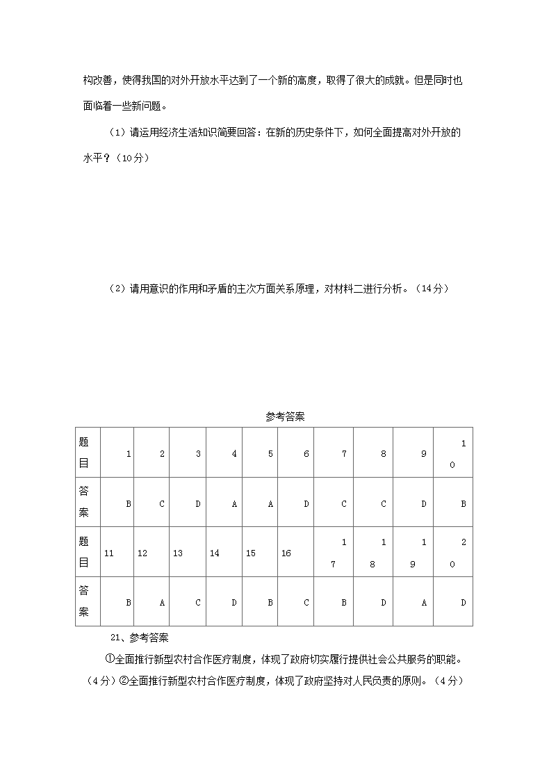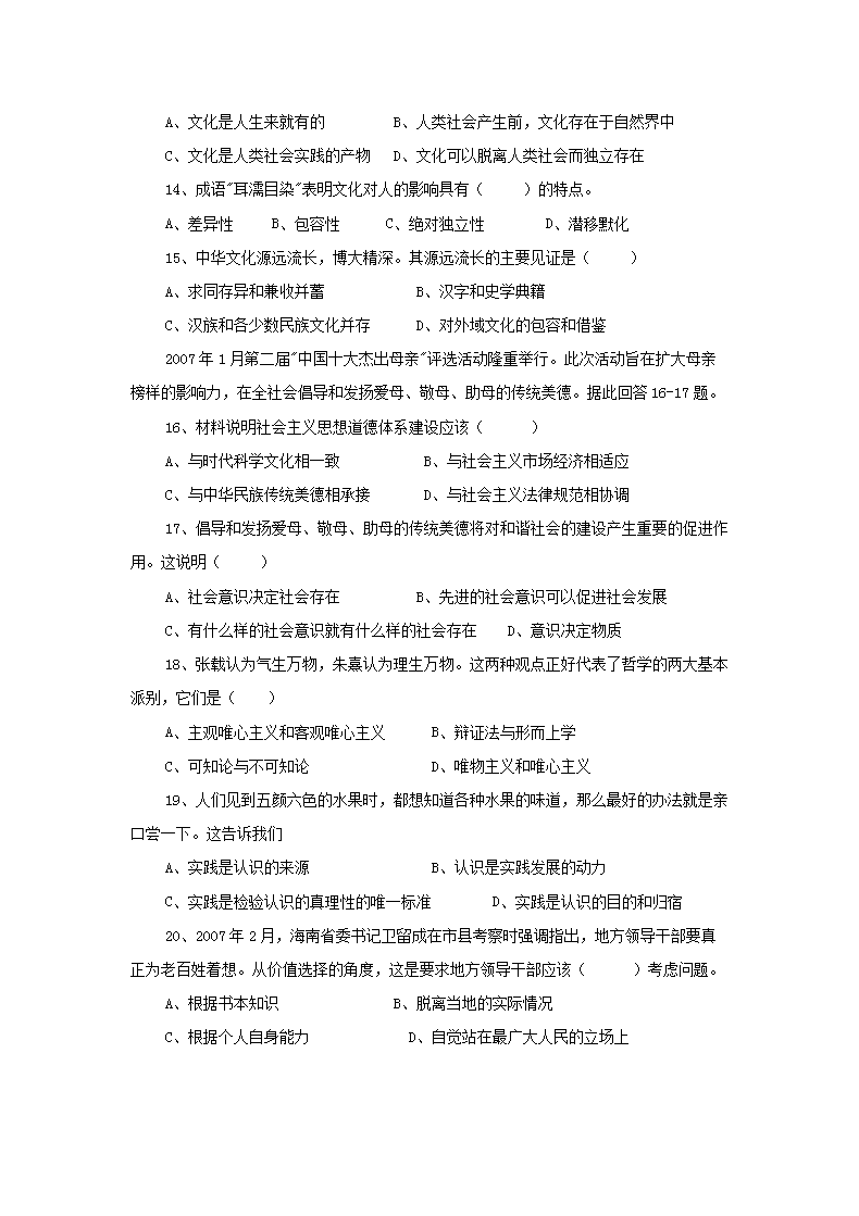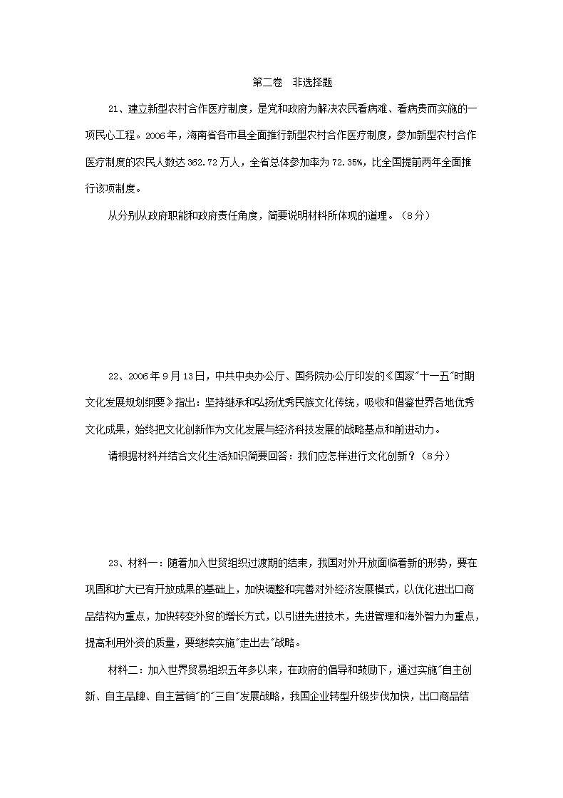 【文档名称】 2007年海南普通高中会考政治真题及答案(Word版).doc