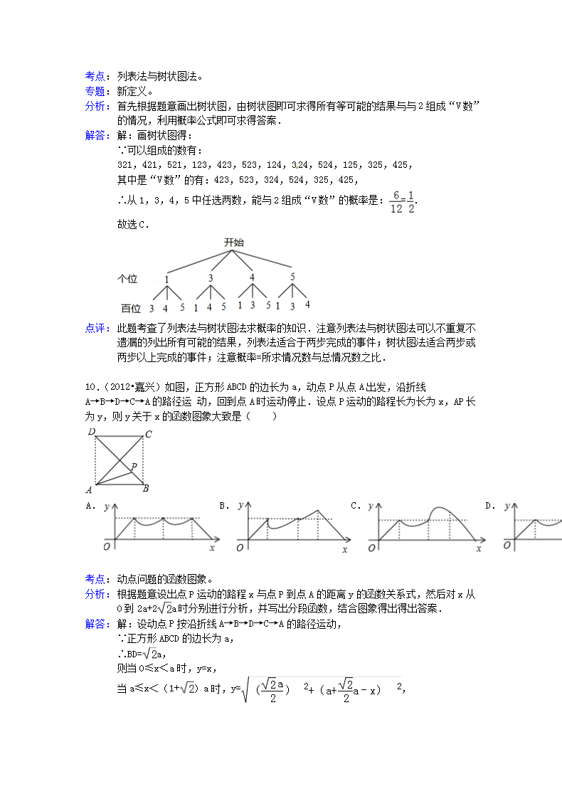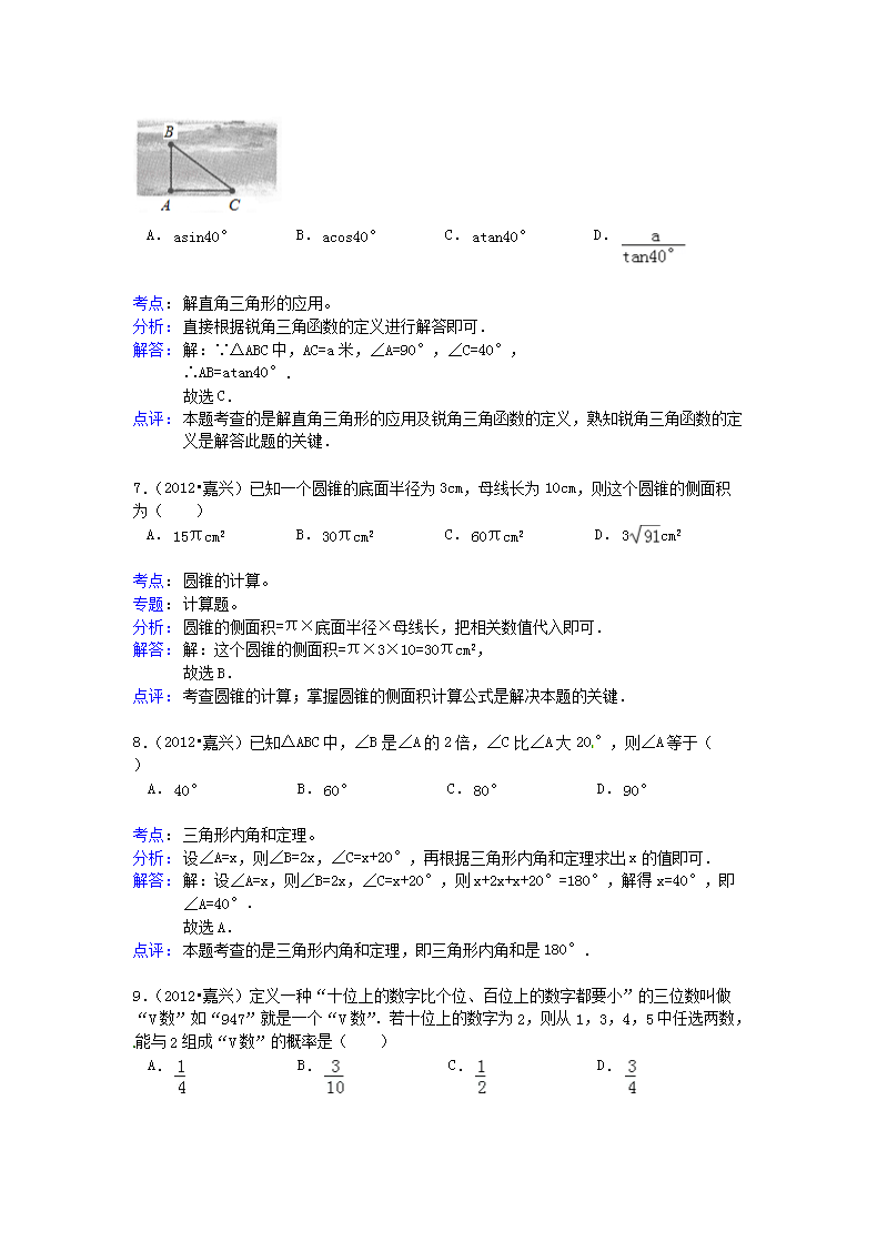 【文档名称】 2012浙江省嘉兴市中考数学真题及答案(Word版).doc