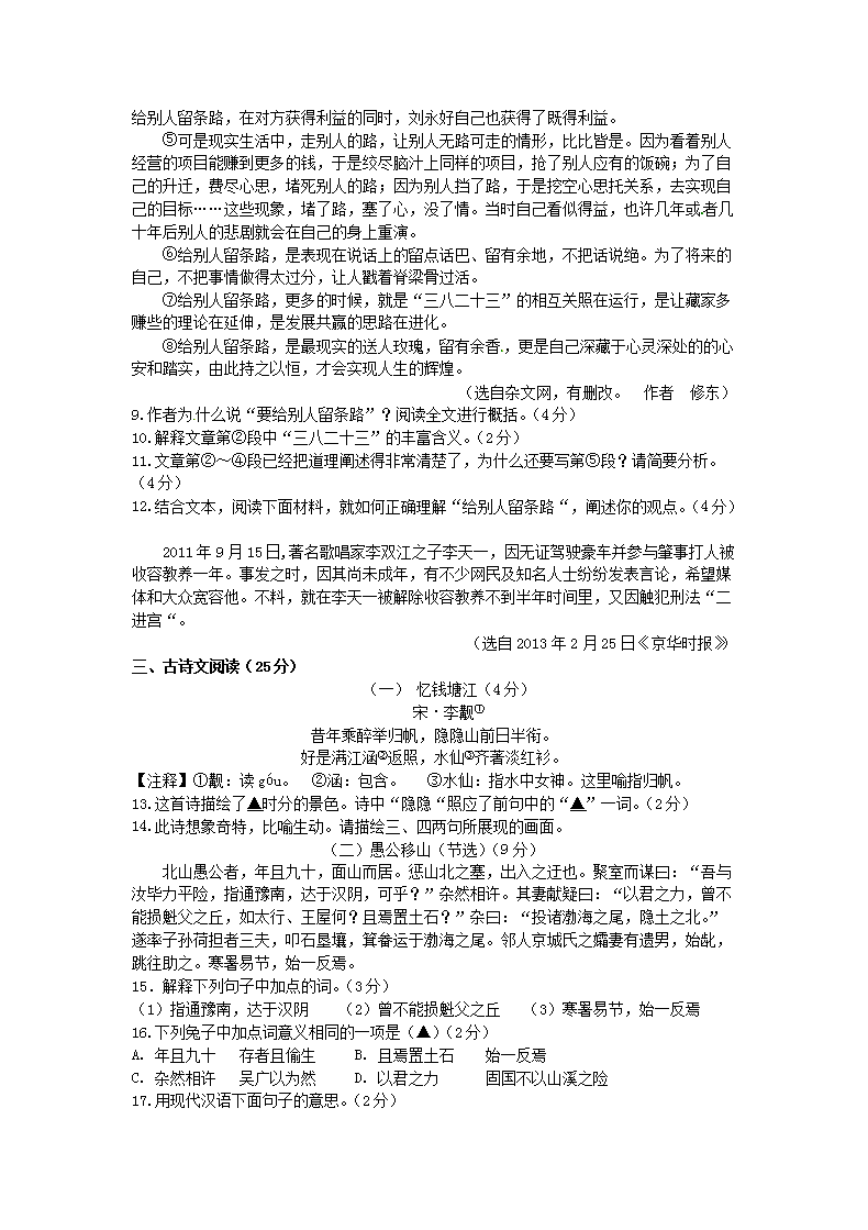 【文档名称】 2013浙江省嘉兴市中考语文真题及答案(Word版).doc