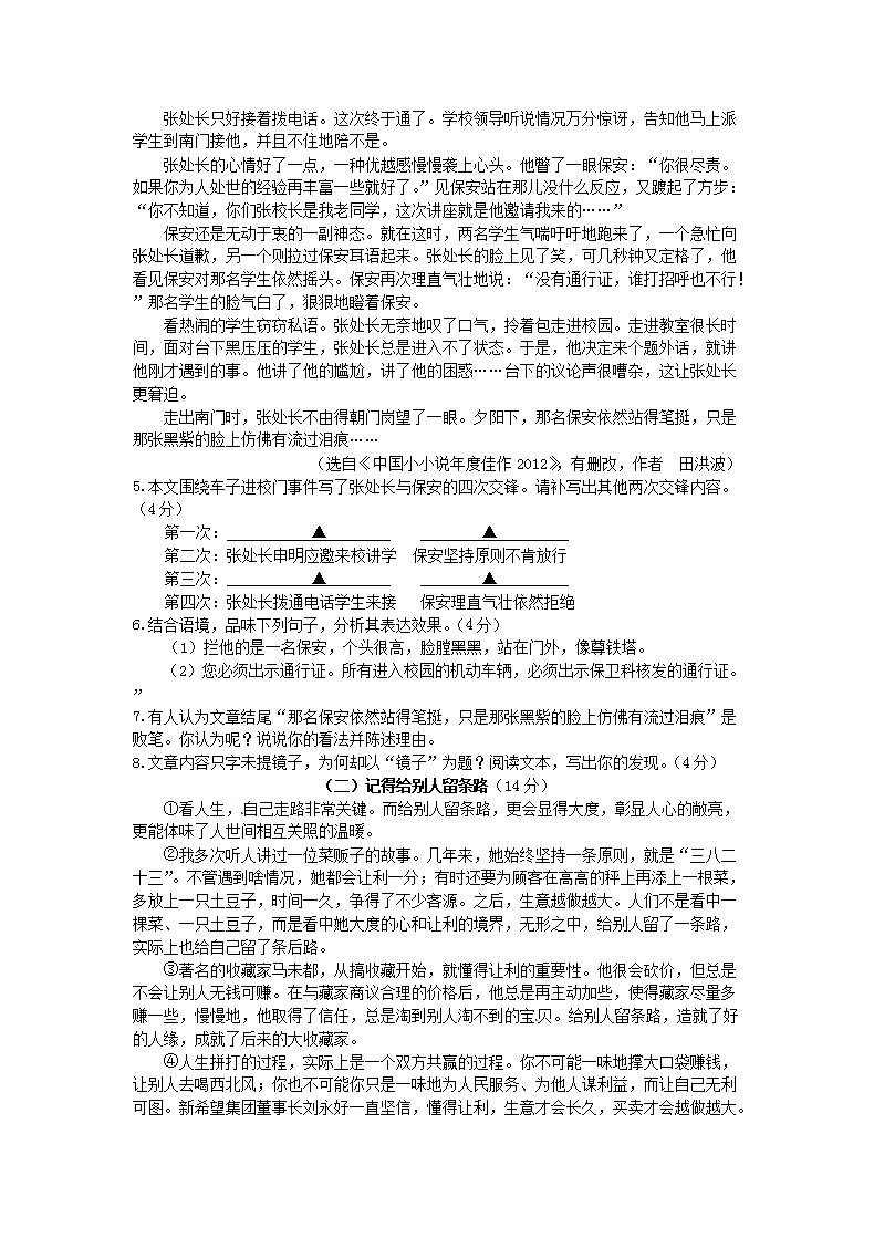 【文档预览】 无忧考网整理发布2013浙江省嘉兴市中考语文真题及答案(Word版),前五页预览如下: