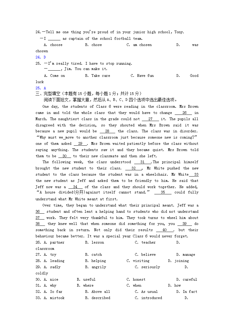 【文档名称】 2014浙江省嘉兴市中考英语真题及答案(Word版).doc