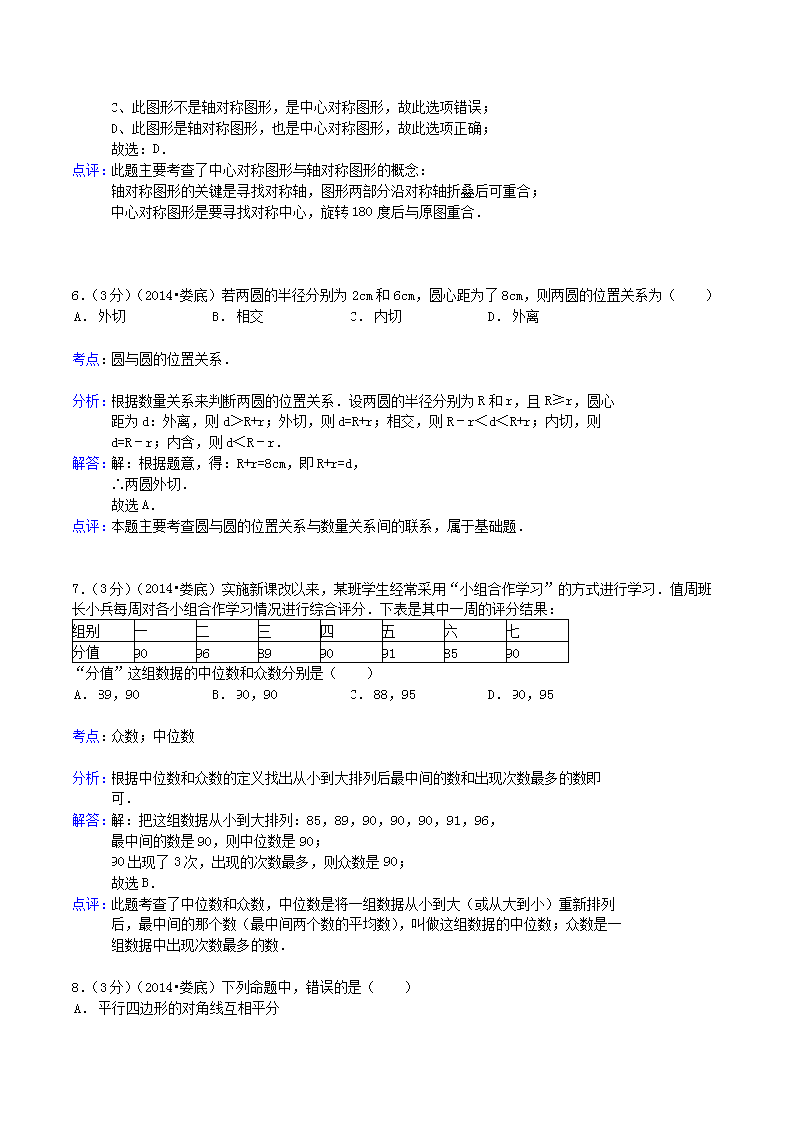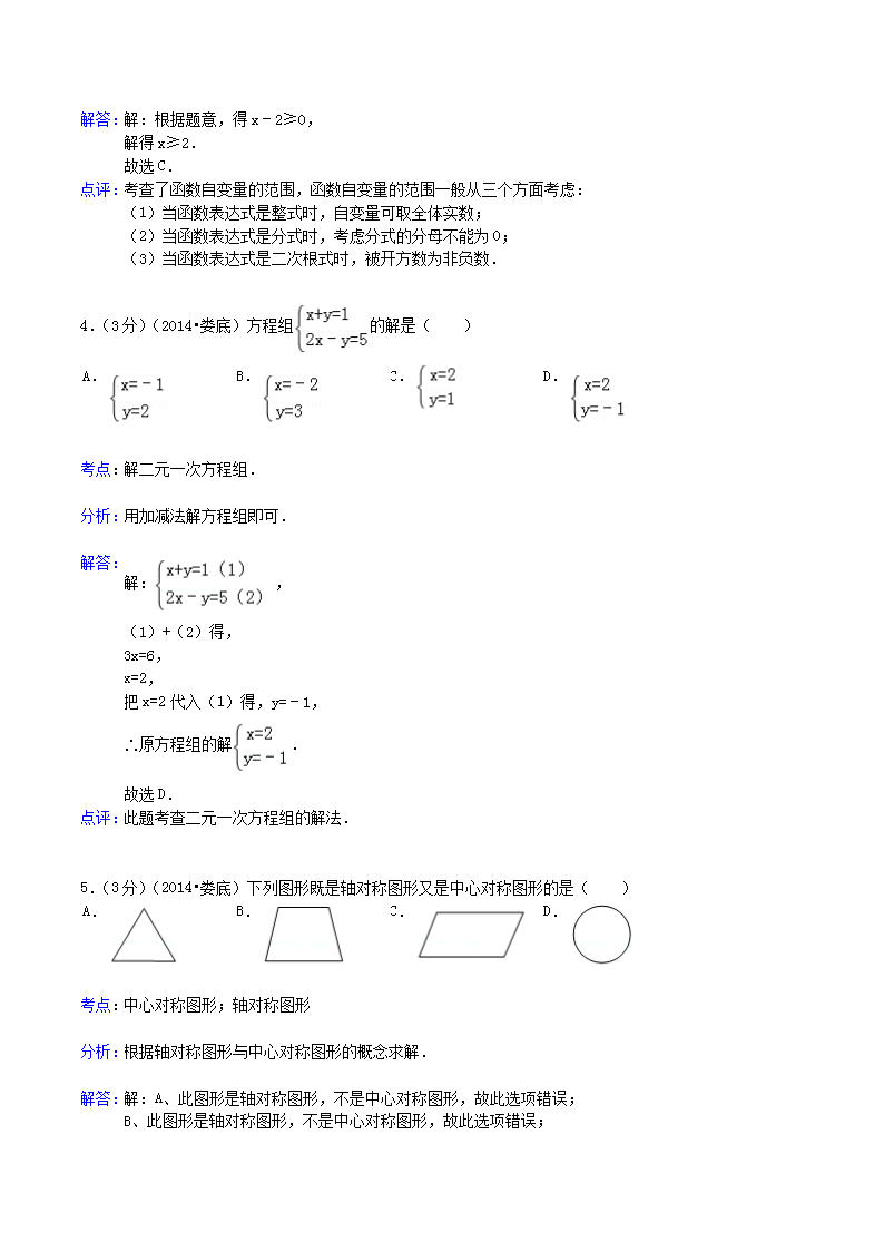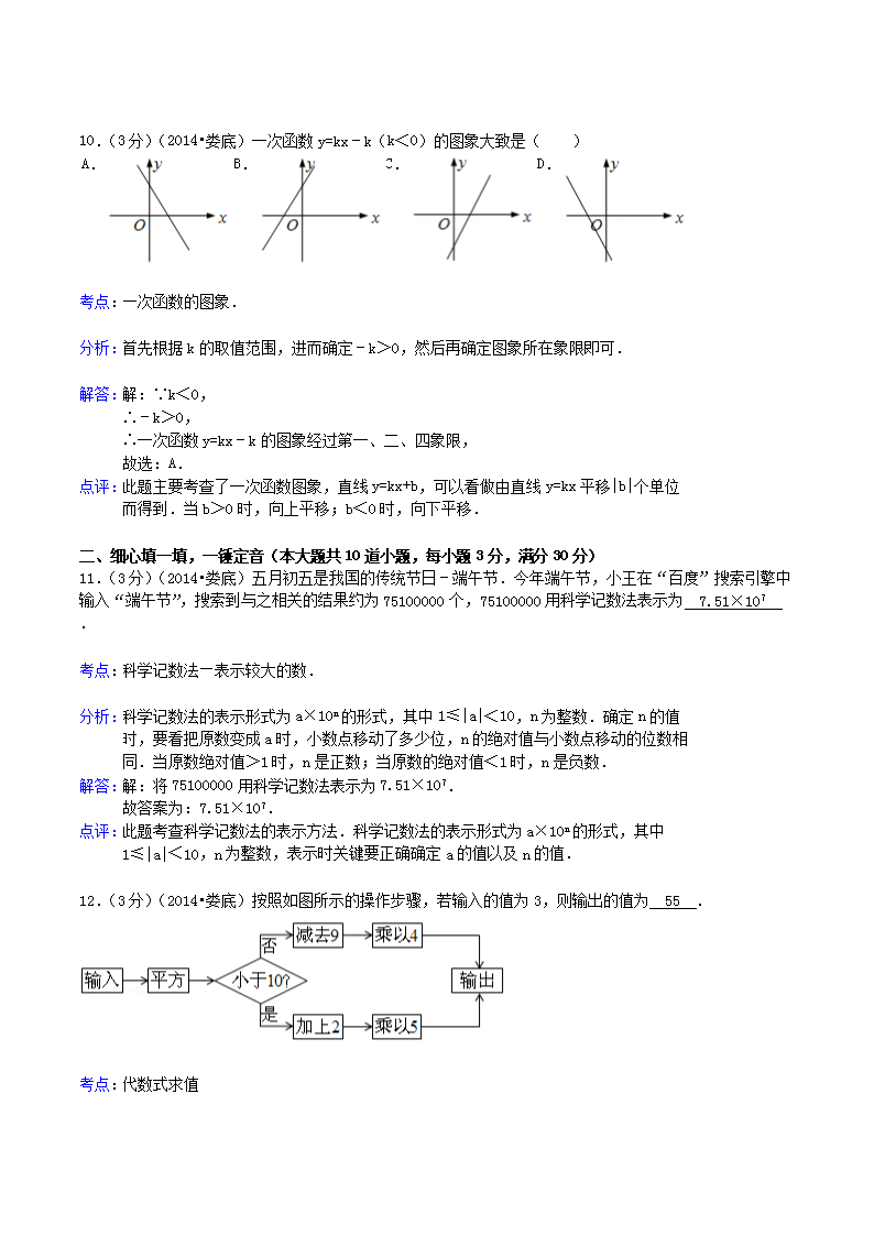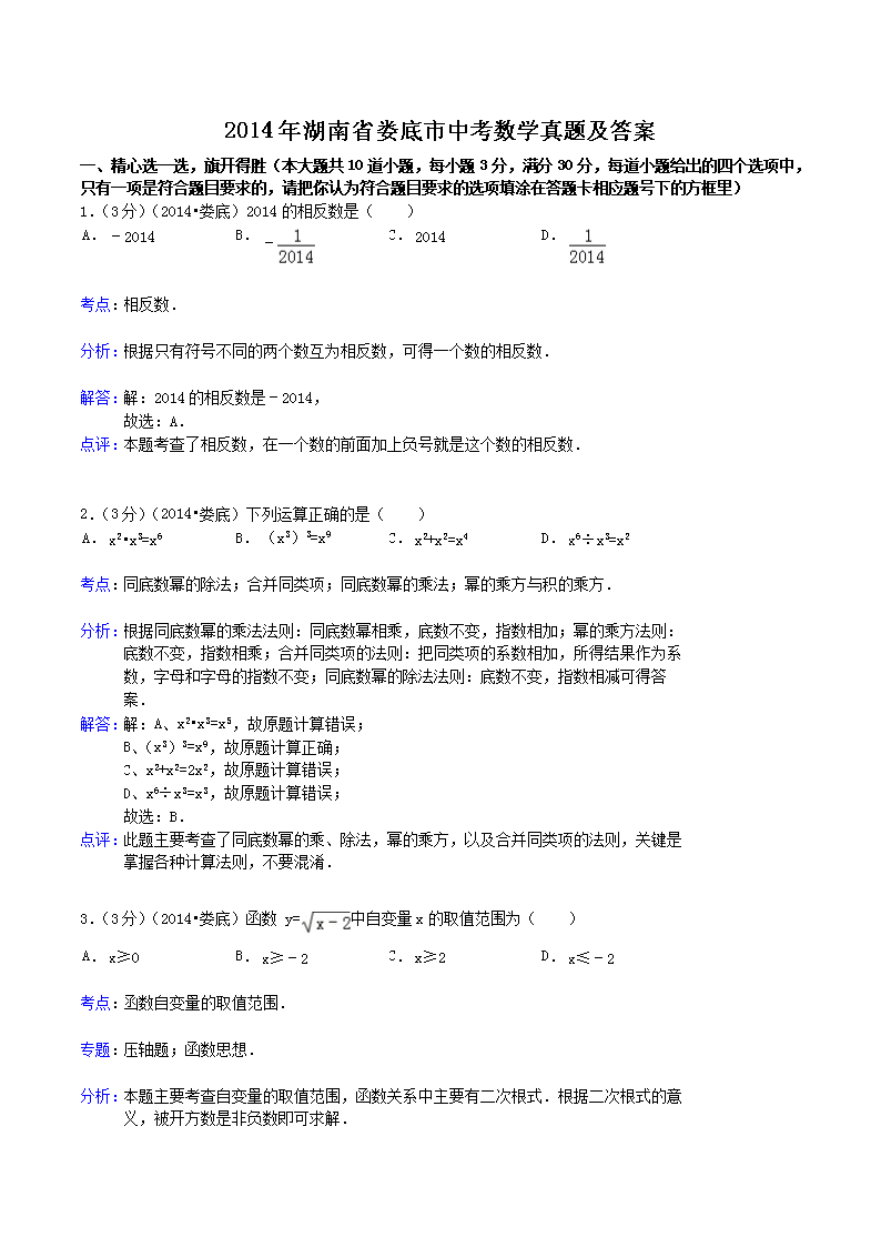 【文档名称】 2014年湖南省娄底市中考数学真题及答案(Word版).doc