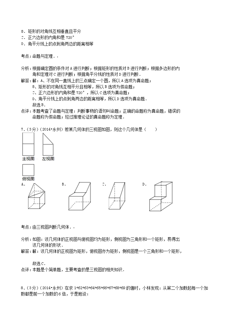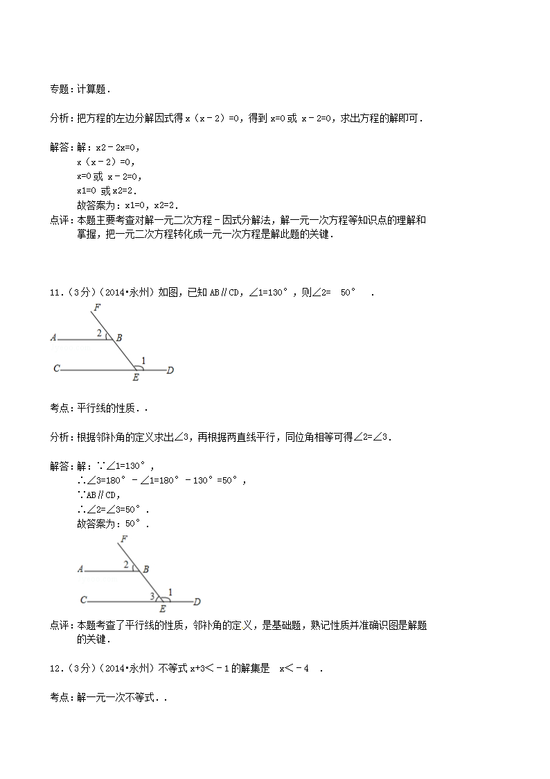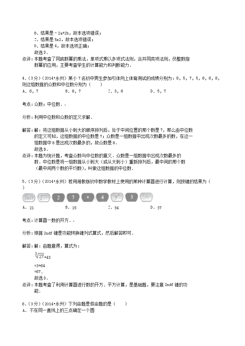 【文档名称】 2014年湖南省永州市中考数学真题及答案(Word版).doc