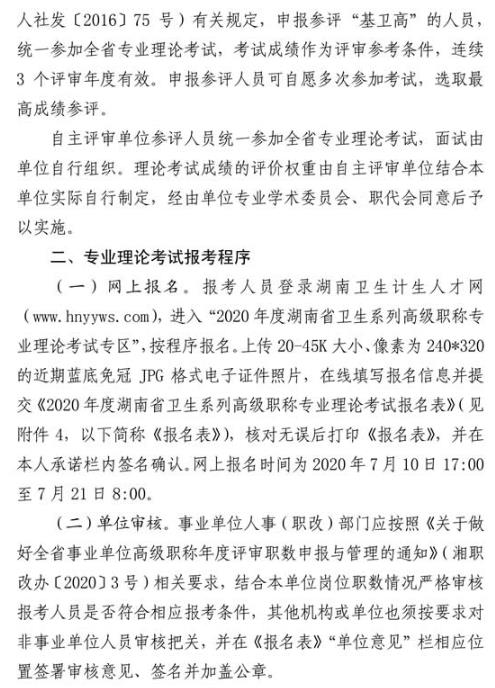 关于做好2020年湖南省卫生系列高级职称评审工作的通知