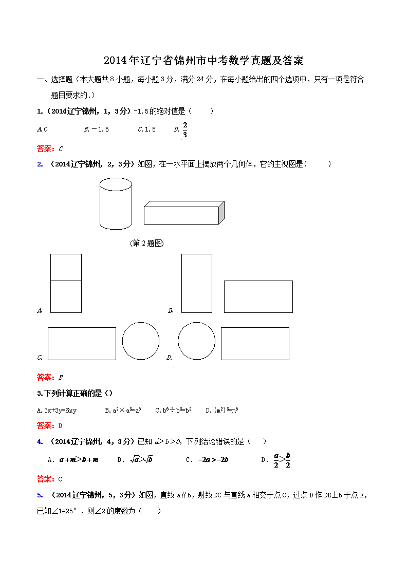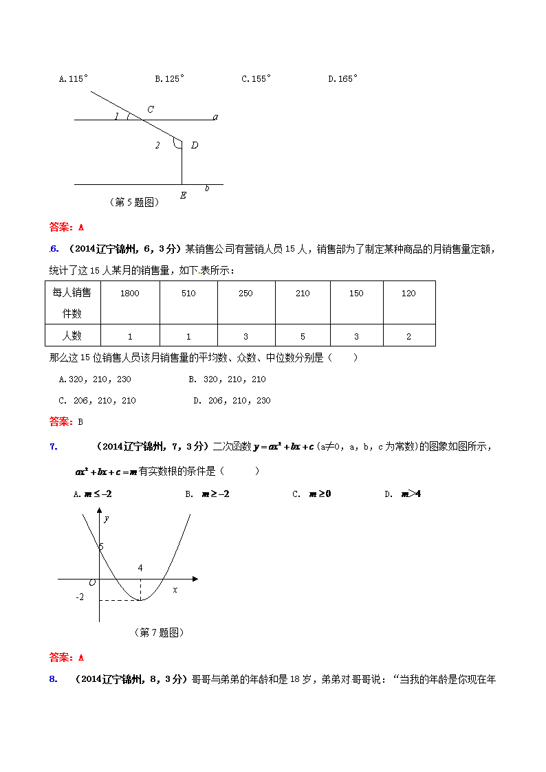 【文档名称】 2014年辽宁省锦州市中考数学真题及答案(Word版).doc