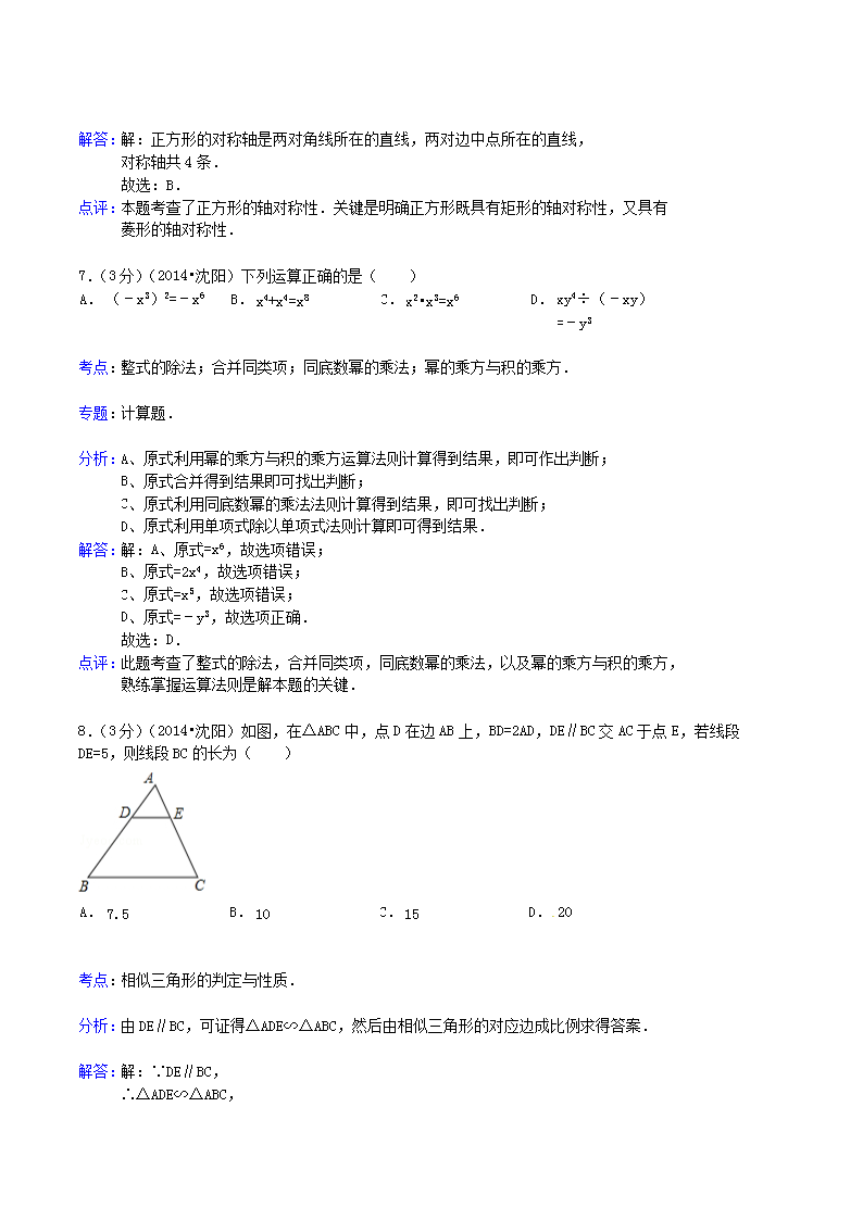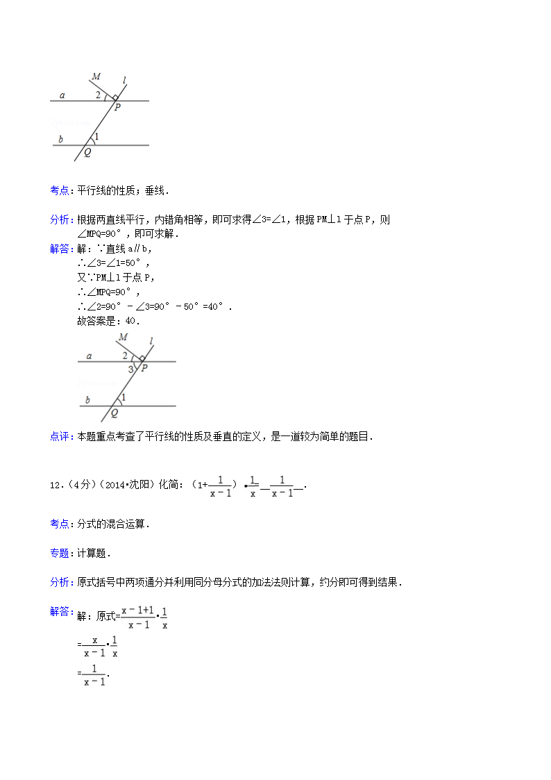 【文档预览】 无忧考网整理发布2014年辽宁省沈阳市中考数学真题及答案(Word版),前五页预览如下: