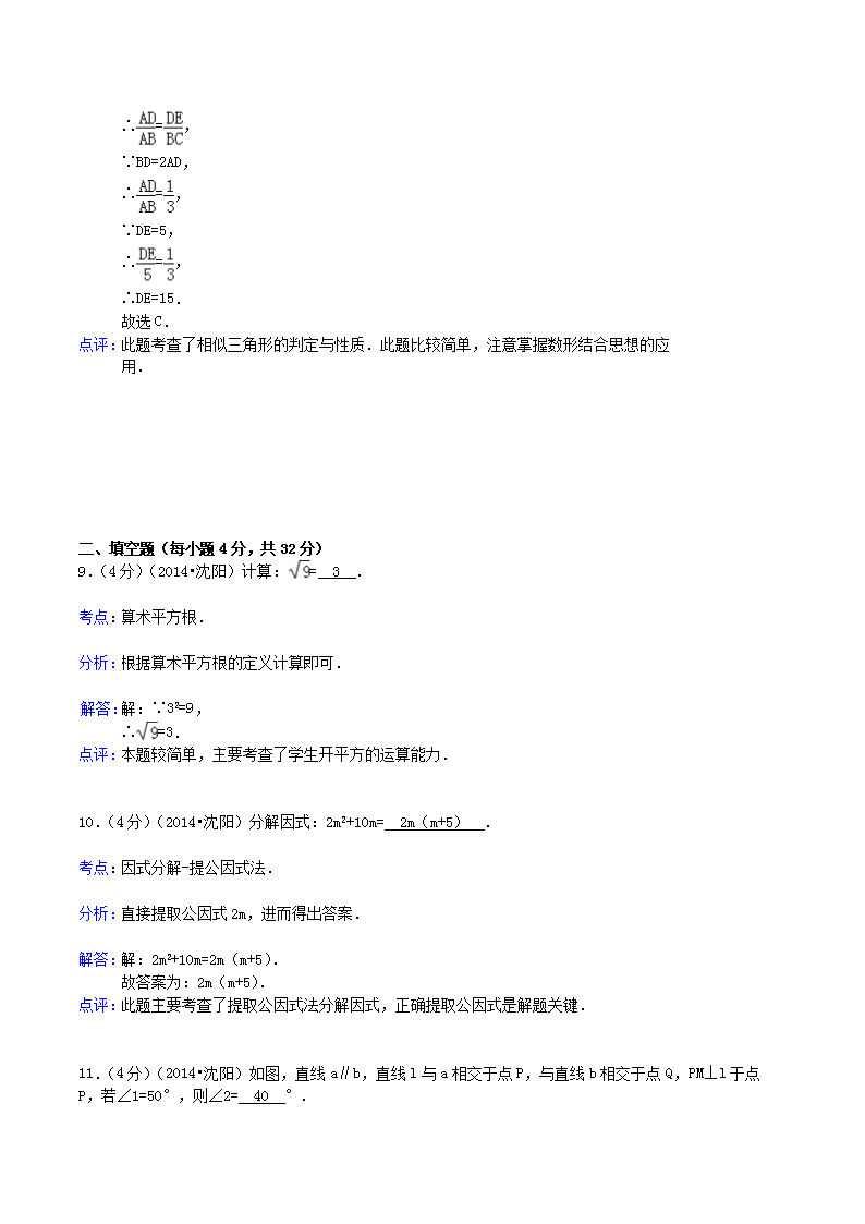 【文档名称】 2014年辽宁省沈阳市中考数学真题及答案(Word版).doc