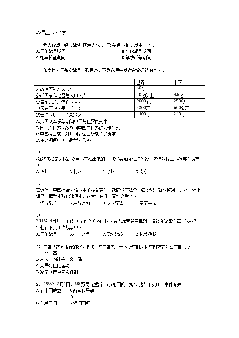 【文档名称】 2016年广东省深圳市中考历史试题及答案(Word版).doc