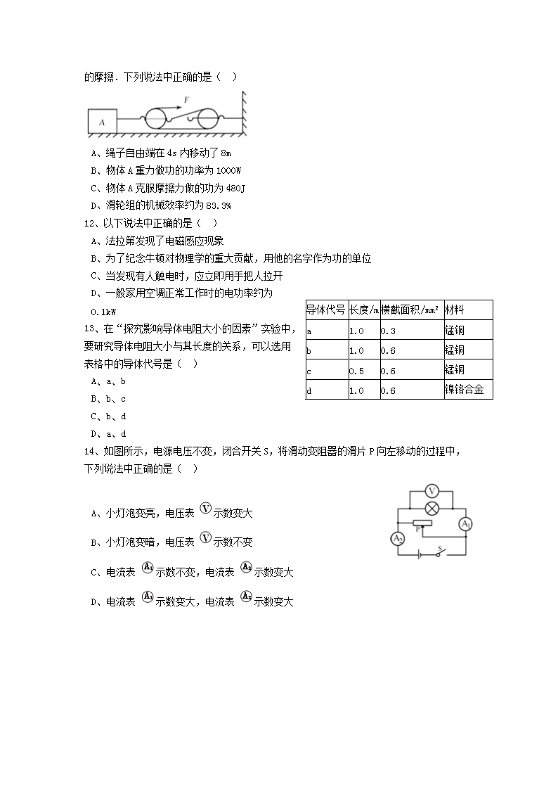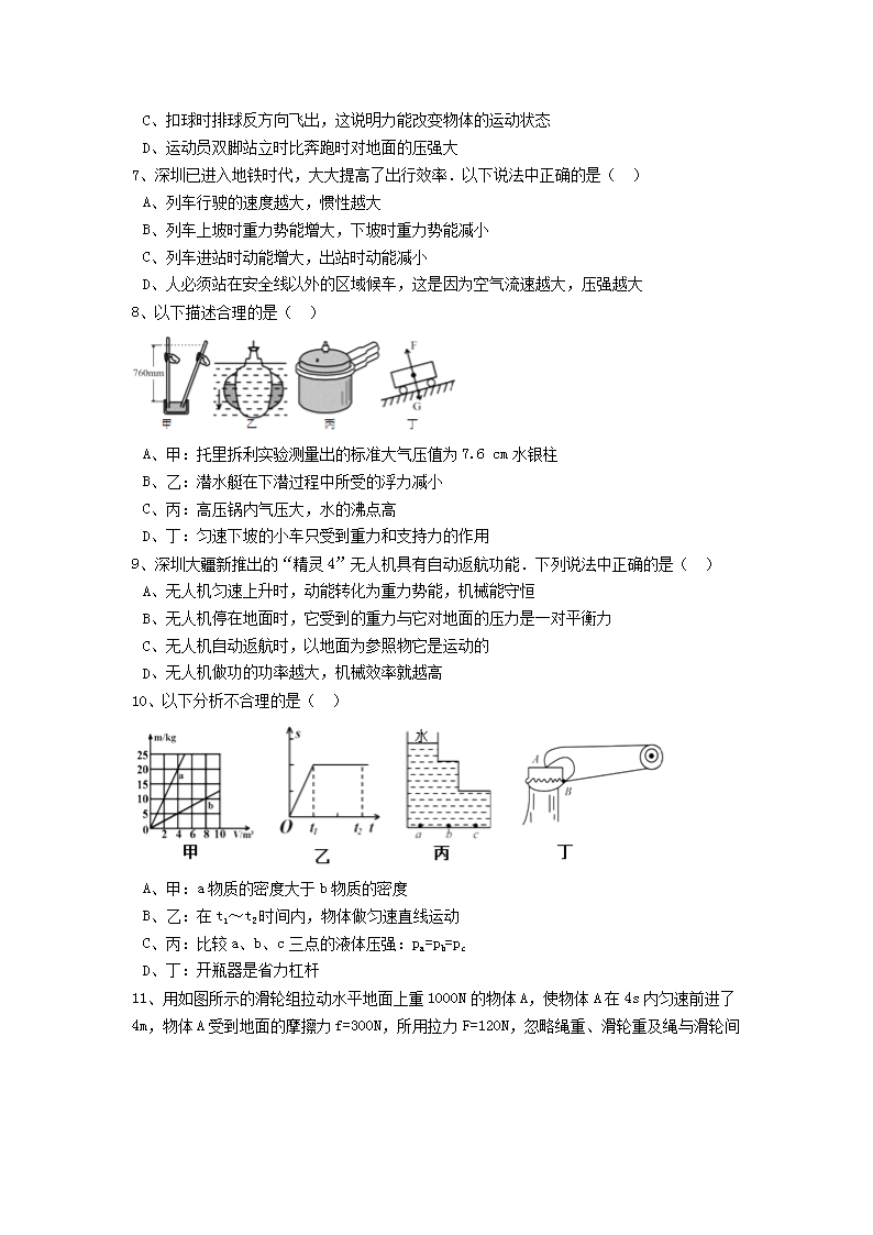 【文档名称】 2016年广东省深圳市中考物理试题及答案(Word版).doc