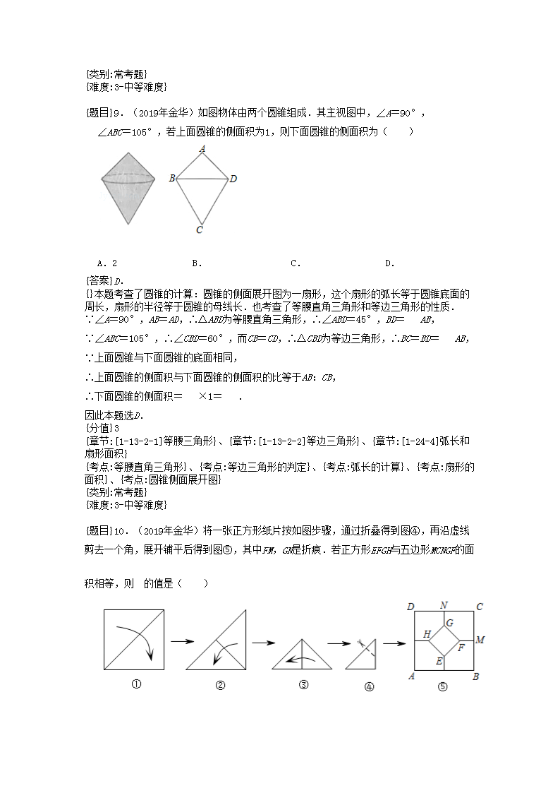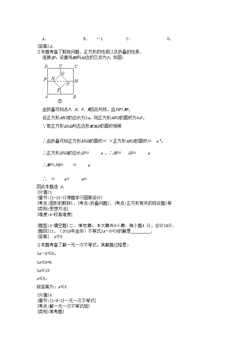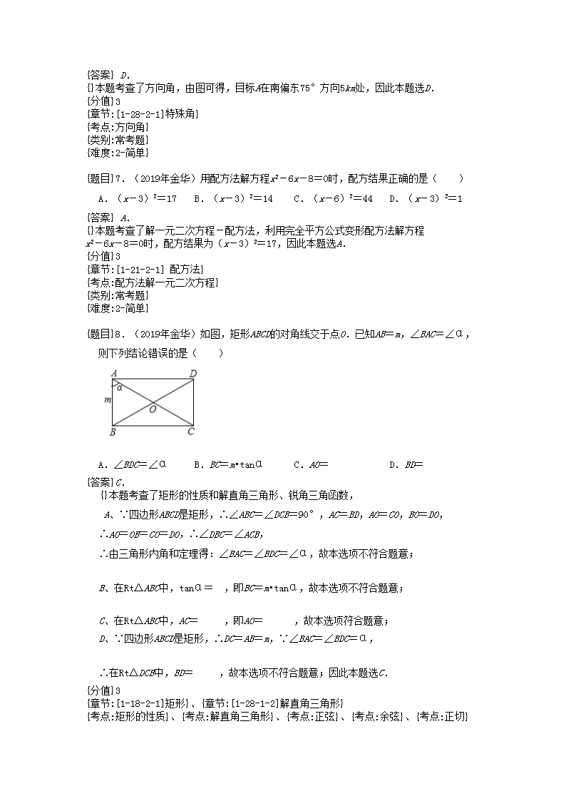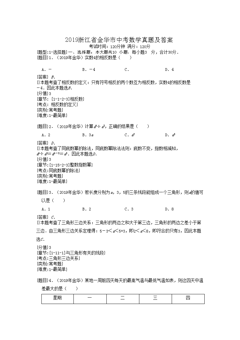【文档名称】 2019浙江省金华市中考数学真题及答案(Word版).doc