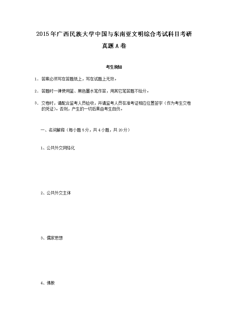 【文档名称】 2015年广西民族大学中国与东南亚文明综合考试科目考研真题A卷(Word版).doc