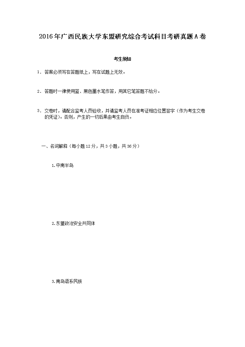 【文档名称】 2016年广西民族大学东盟研究综合考试科目考研真题A卷(Word版).doc