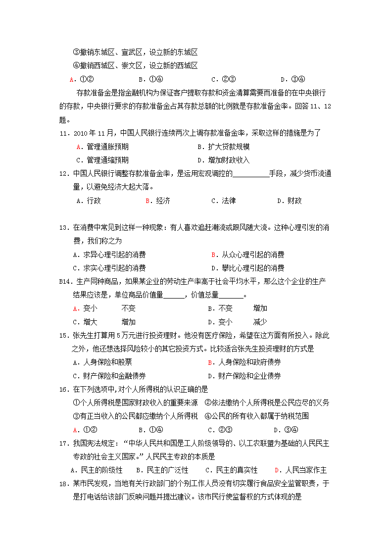 【文档名称】 2011年北京普通高中会考政治真题及答案(Word版).doc