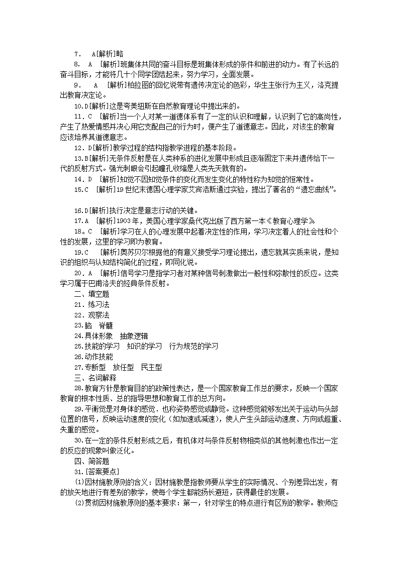 【文档名称】 2009年河南特岗教师招聘考试教育理论综合知识真题及答案(Word版).doc