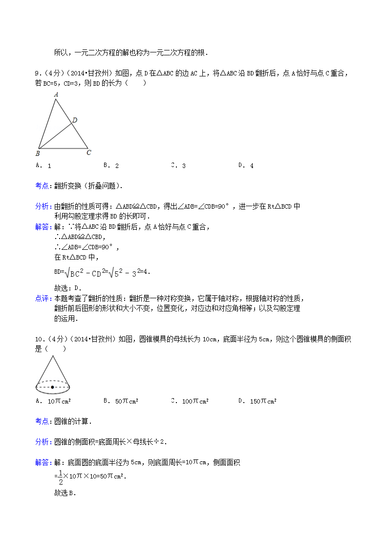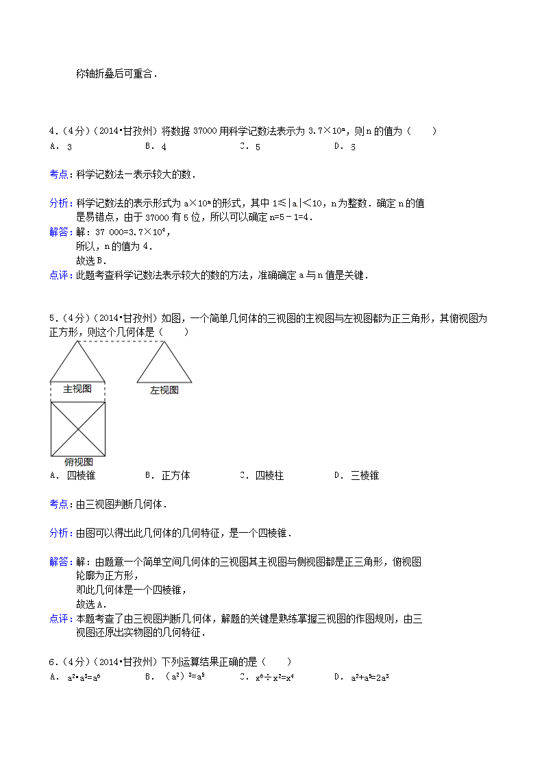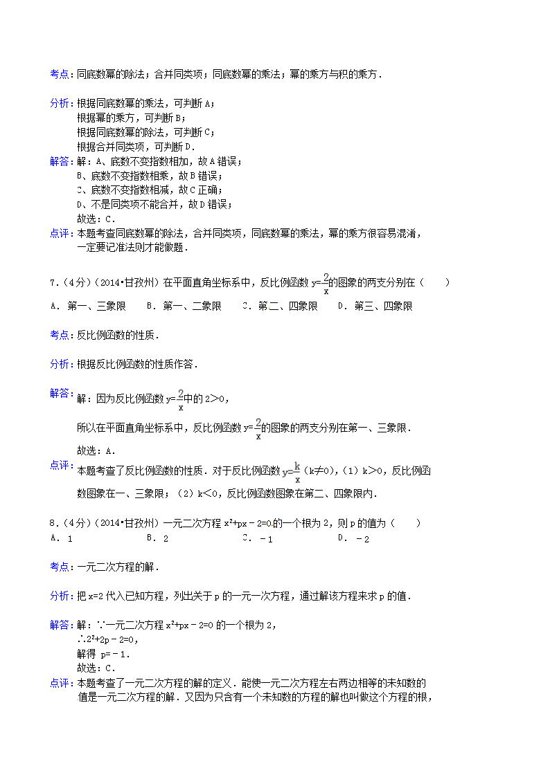 【文档名称】 2014年四川省甘孜州中考数学真题及答案(Word版).doc