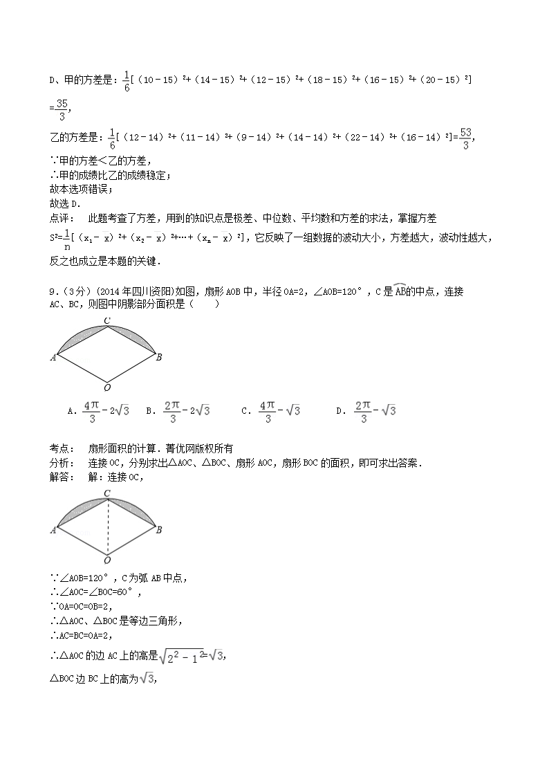 【文档名称】 2014年四川省资阳市中考数学真题及答案(Word版).doc