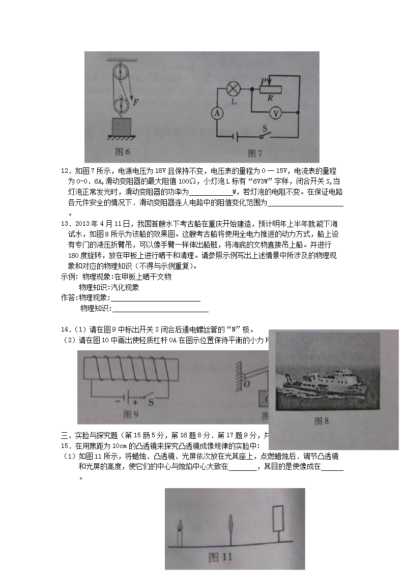 【文档名称】 2013重庆中考物理真题及答案(Word版).doc