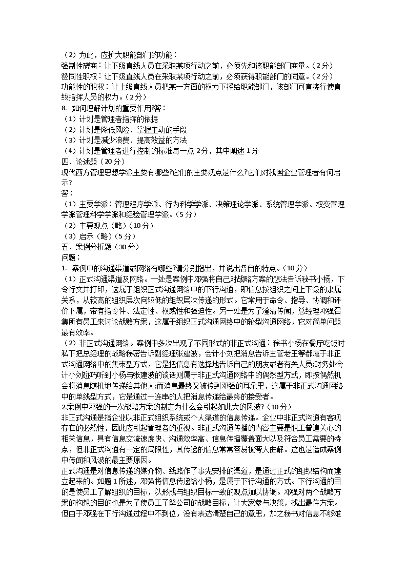 【文档名称】 2009年江西理工大学管理学考研真题及答案(Word版).doc