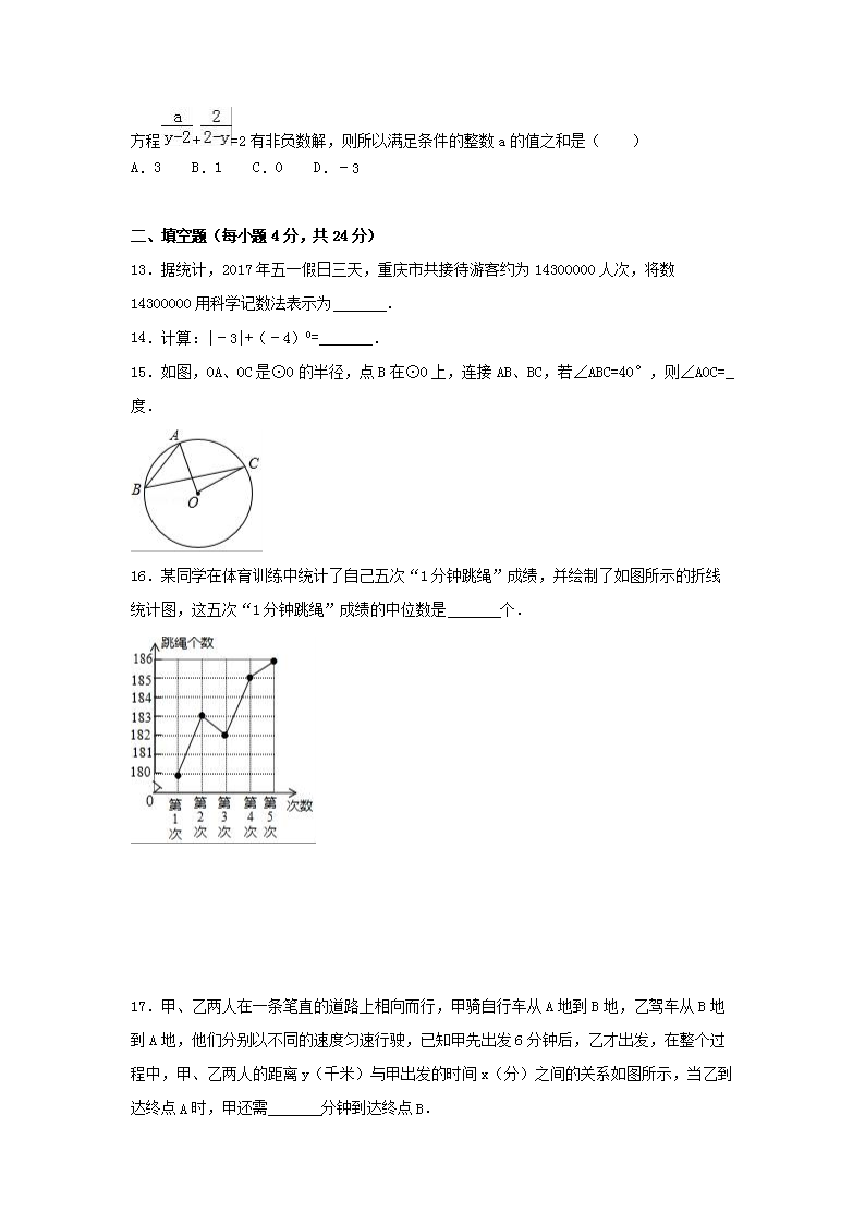 【文档名称】 2017重庆中考数学真题及答案B卷(Word版).doc