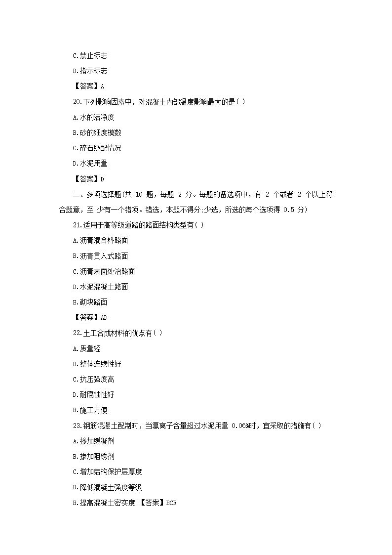 【文档预览】 无忧考网整理发布2020年二级建造师市政工程考试真题及答案(Word版),前五页预览如下: