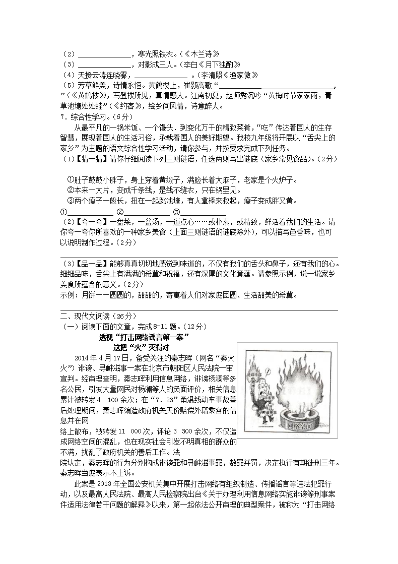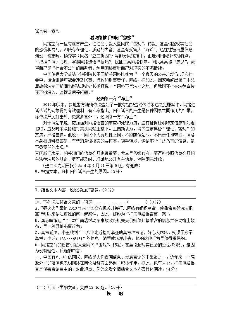 【文档预览】 无忧考网整理发布2014浙江省金华市中考语文真题及答案(Word版),前五页预览如下: