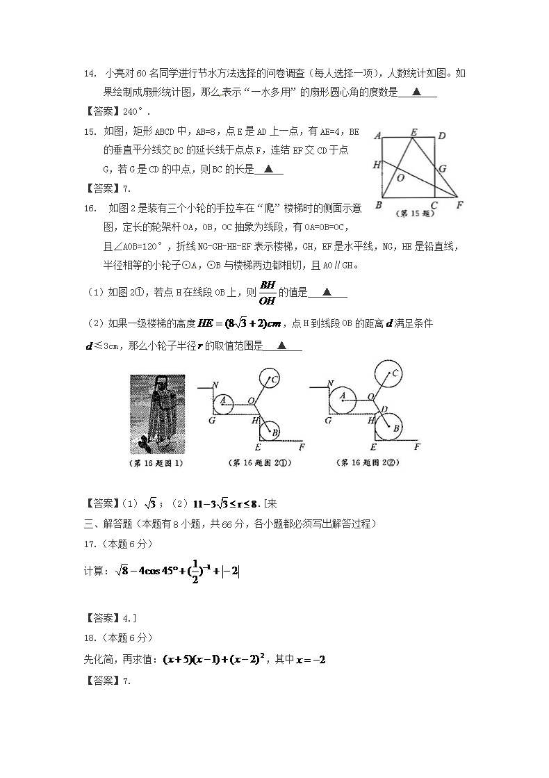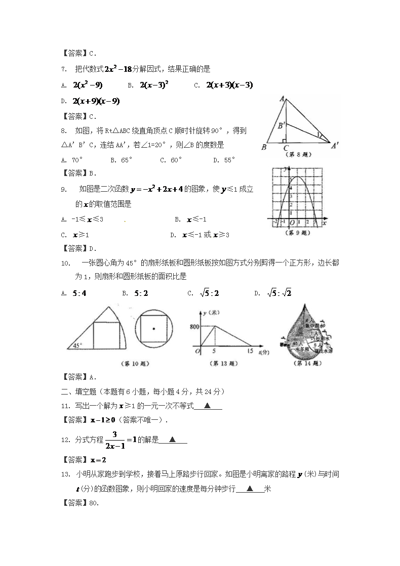 【文档名称】 2014浙江省金华市中考数学真题及答案(Word版).doc