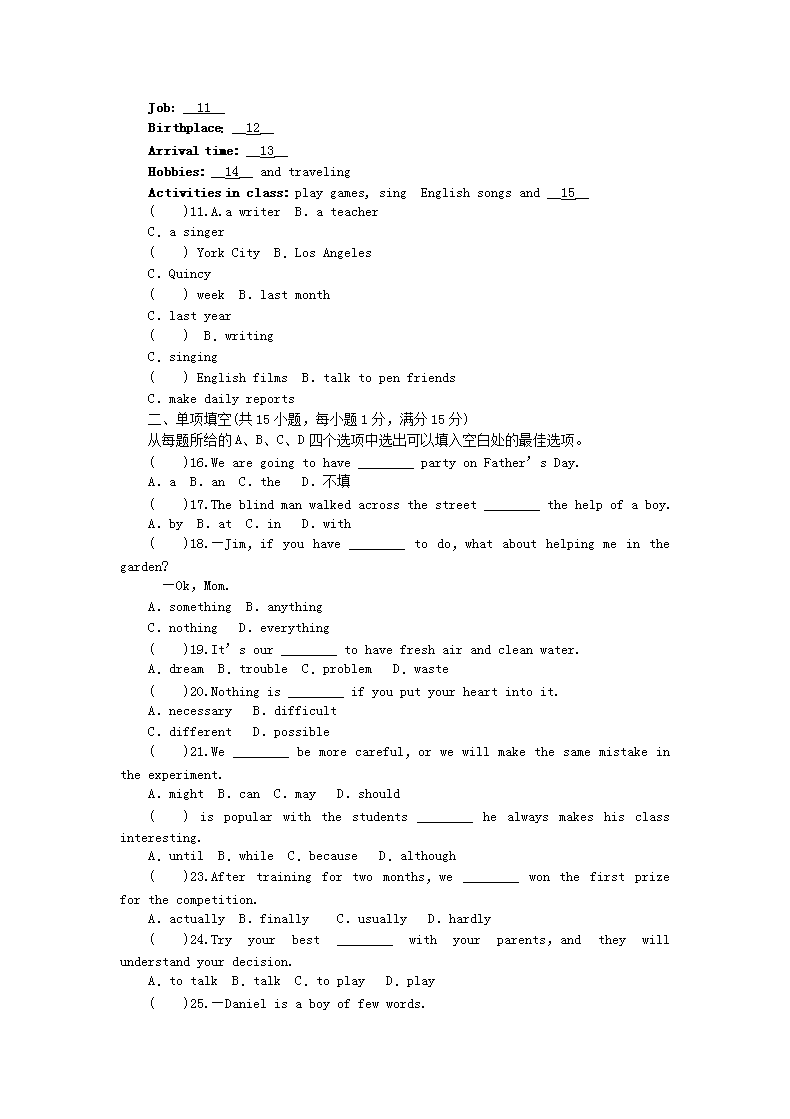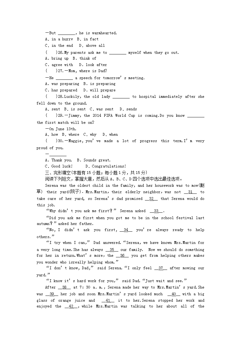 【文档名称】 2014浙江省金华市中考英语真题(Word版).doc