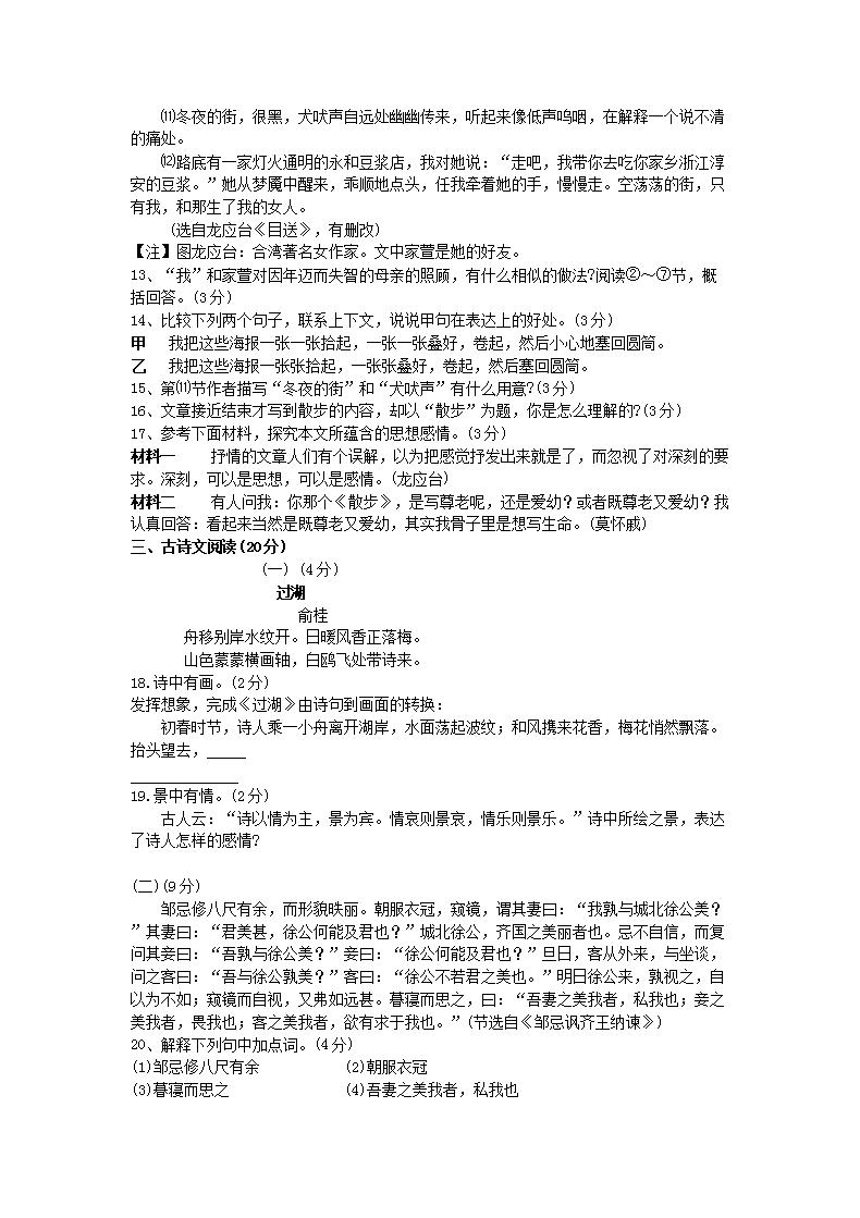 【文档预览】 无忧考网整理发布2012浙江省金华市中考语文真题及答案(Word版),前五页预览如下: