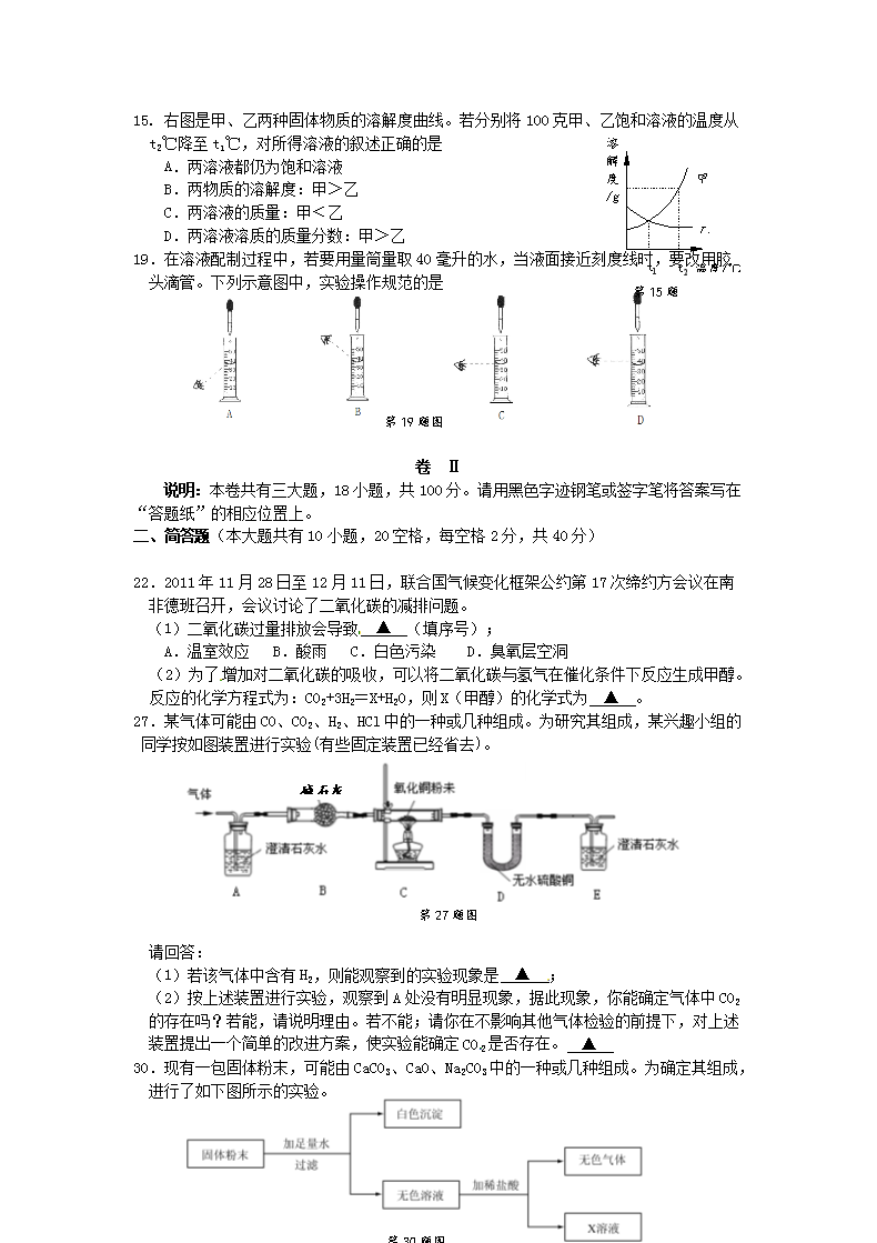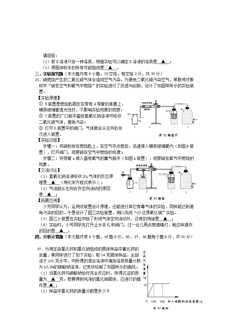 【文档名称】 2012浙江省金华市中考化学真题及答案(Word版).doc