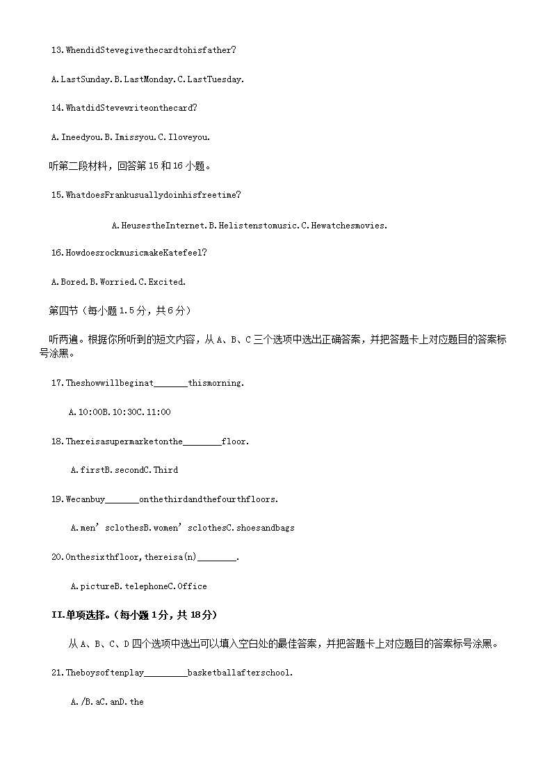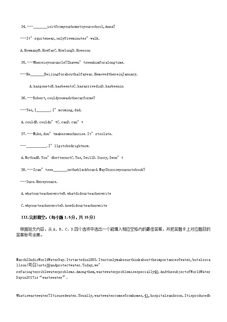 【文档名称】 2017重庆中考英语真题及答案B卷(Word版).doc
