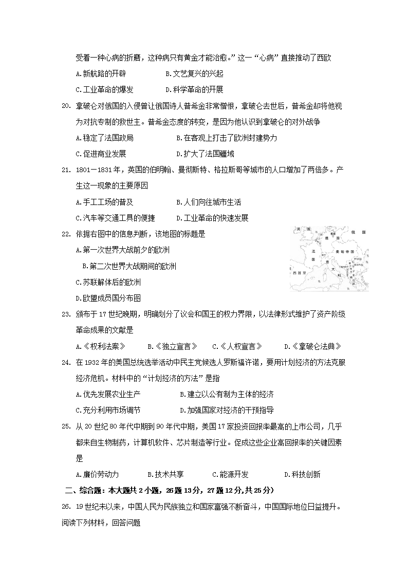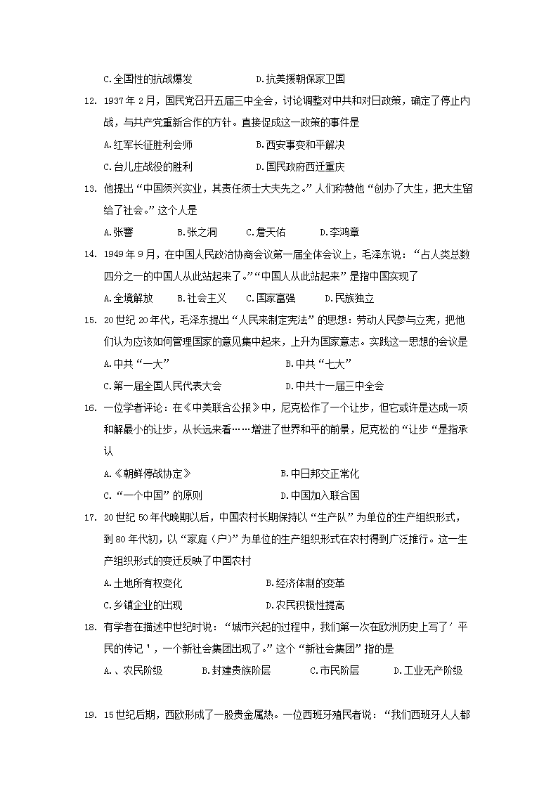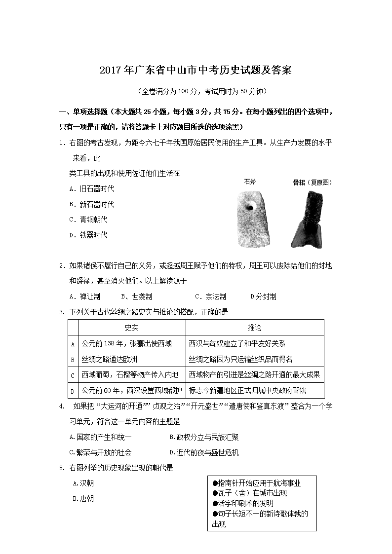【文档名称】 2017年广东省中山市中考历史试题及答案(Word版).doc